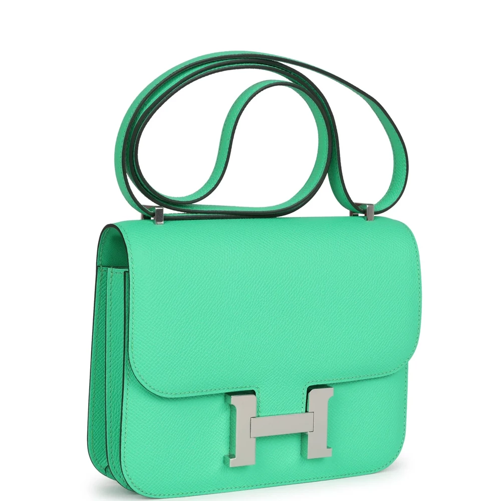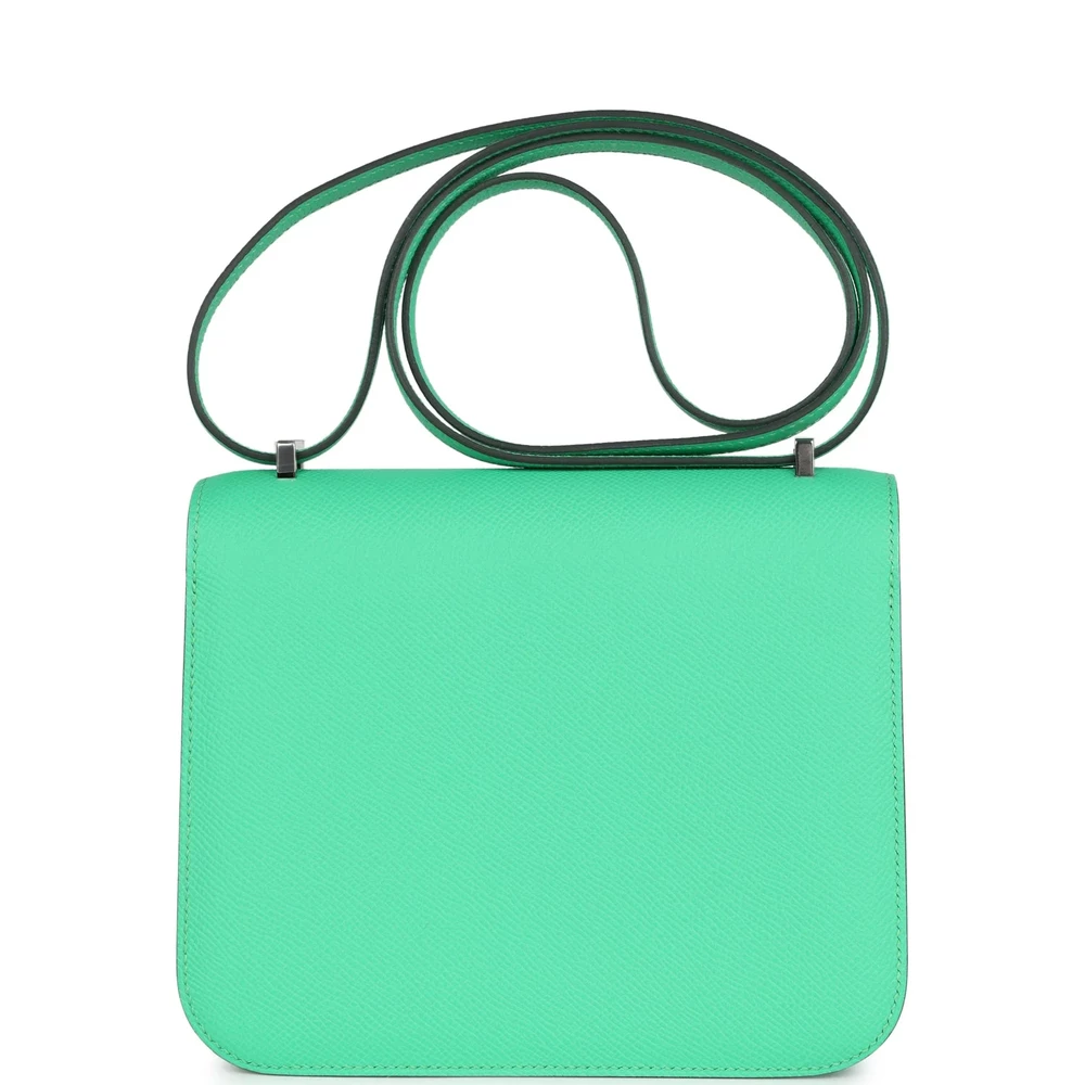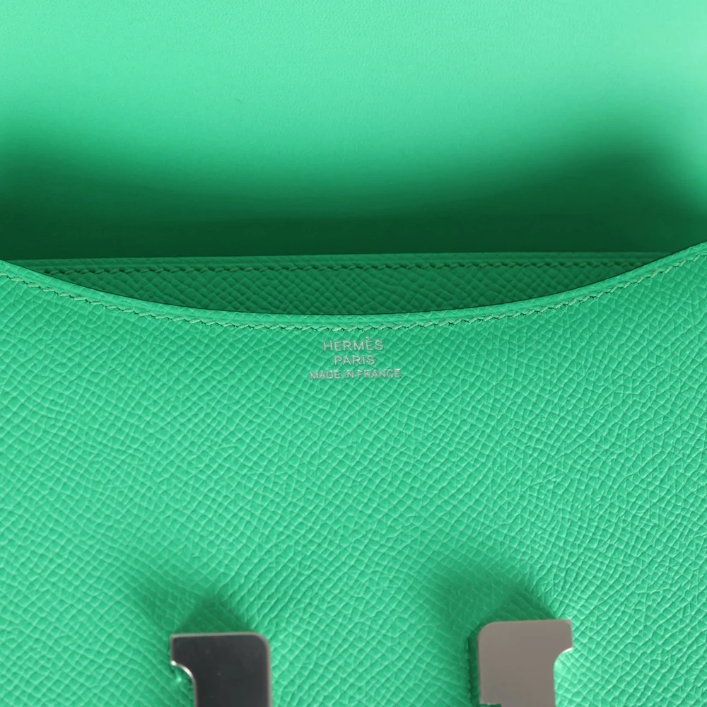 This Hermès Constance 18 in Vert Comics Epsom is a playful and bold statement piece. The bright green hue exudes a lively, energetic charm. Epsom leather ensures structure and durability while maintaining a refined finish. Palladium hardware adds a sleek, modern contrast. Compact yet eye-catching, perfect for making a fashion-forward statement. Elevate your collection with this fun and striking Constance.