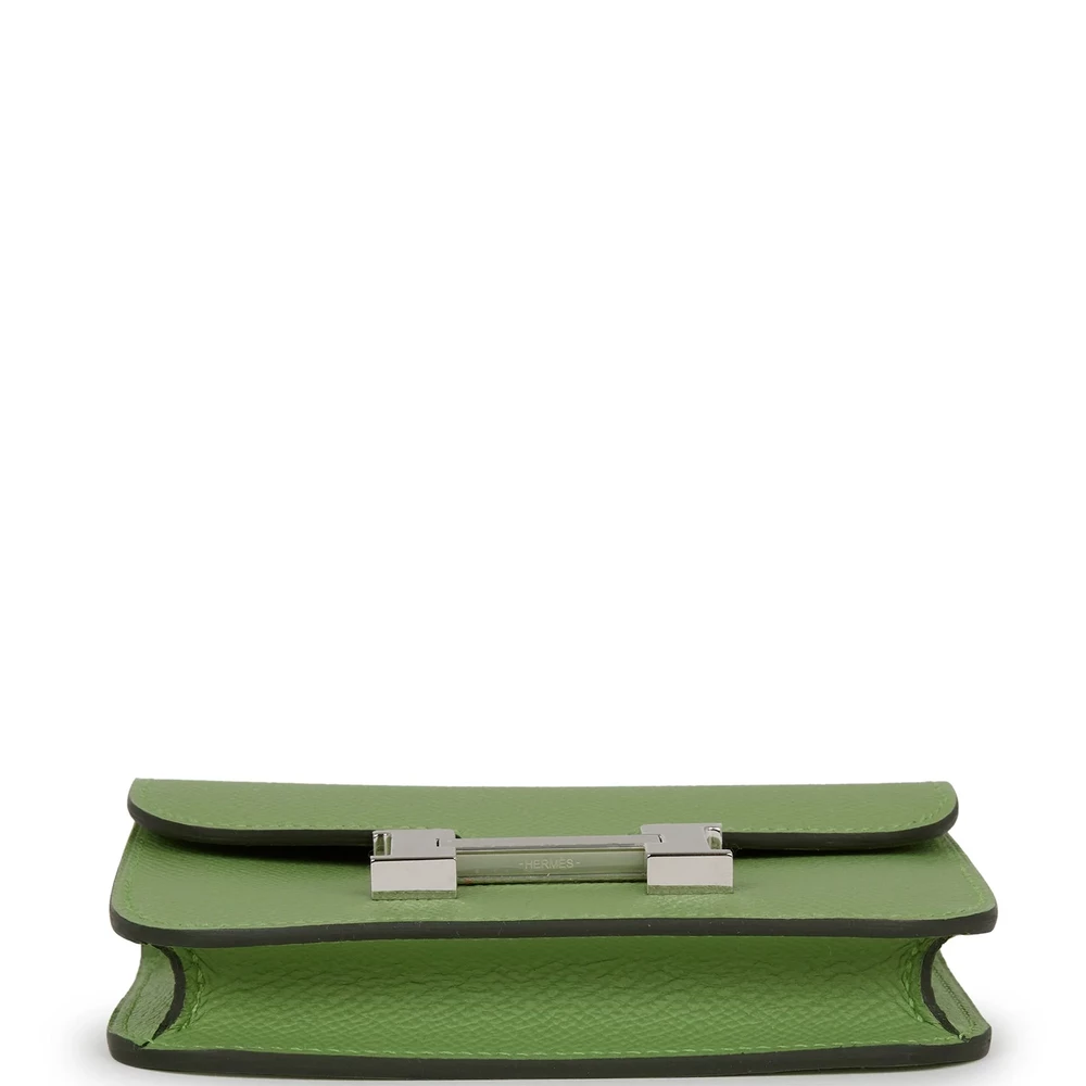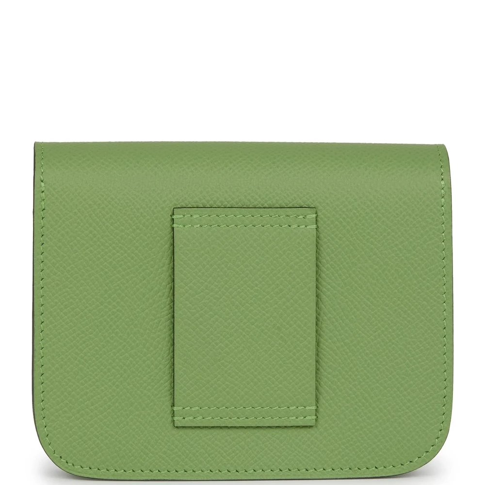 This Hermès Constance Slim Wallet in Vert Criquet Epsom is a refined and elegant essential. The soft green hue is refreshing and sophisticated. Epsom leather ensures durability while maintaining a sleek and polished look. Palladium hardware adds a cool-toned contrast for a modern appeal. Slim yet practical, perfect for carrying everyday essentials with style. Elevate your collection with this elegant and versatile wallet.