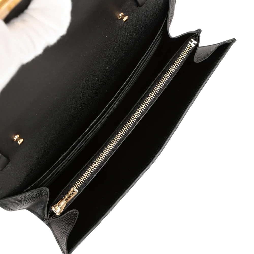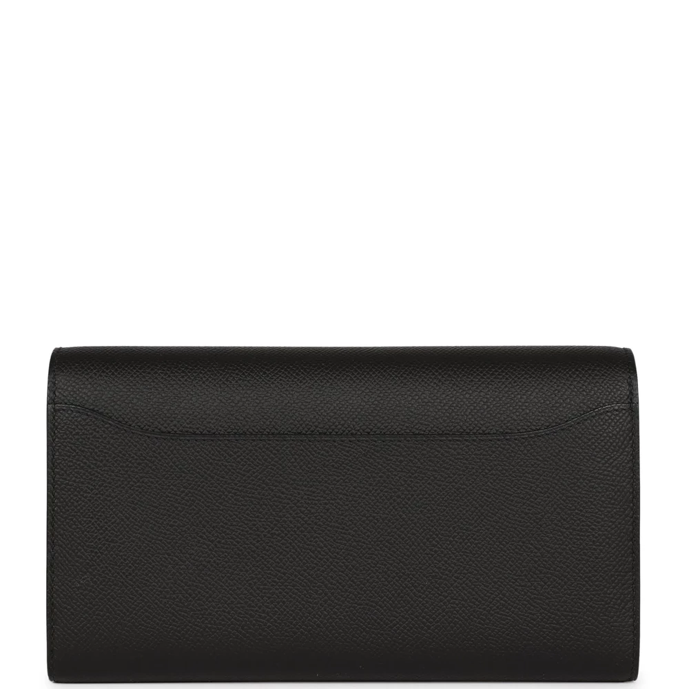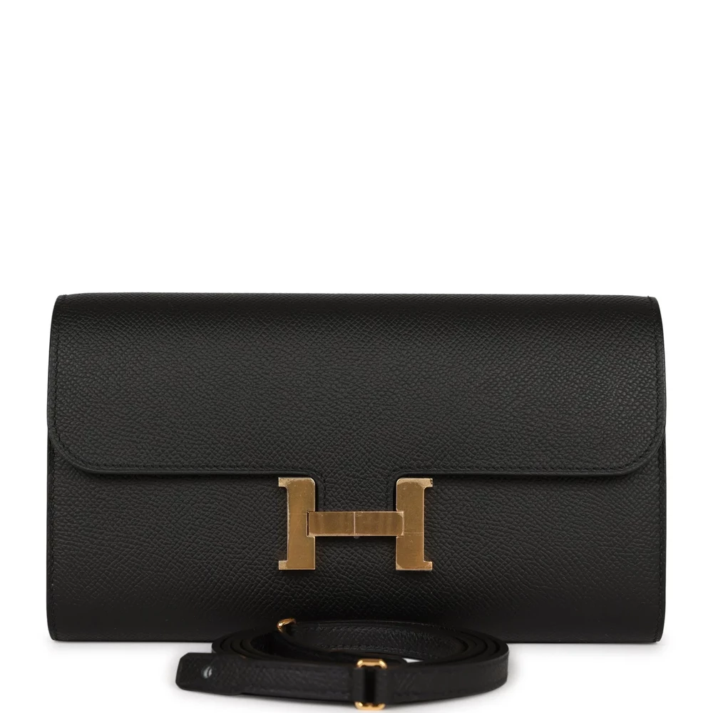 This Hermès Constance Wallet To Go in Black Epsom leather is a sleek and sophisticated accessory, enhanced by gold hardware. Its classic black hue is versatile and timeless, perfect for any occasion. Compact yet functional, it effortlessly combines style and practicality. A testament to Hermès’ craftsmanship, it is a must-have for the modern minimalist.