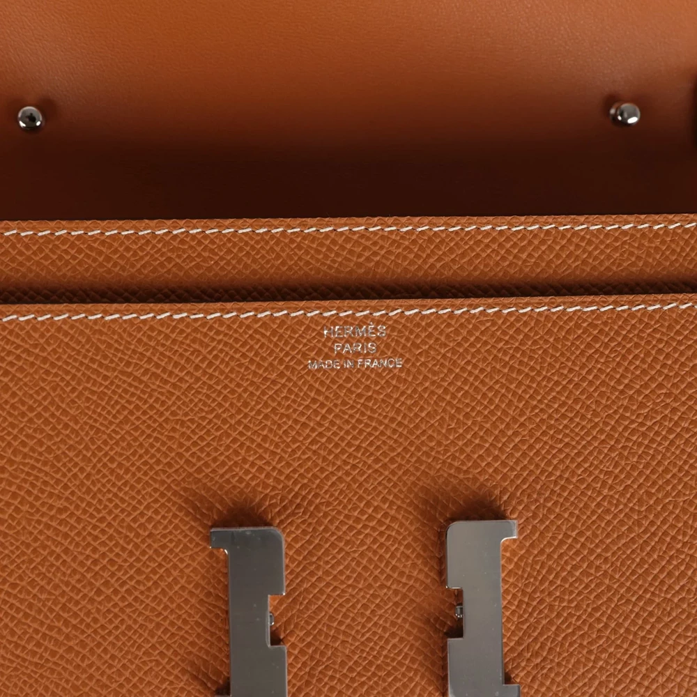 This Hermès Constance To Go Wallet in Toffee Epsom leather is a stylish and versatile accessory. Designed with an adjustable shoulder strap, it offers a hands-free carrying option while maintaining a sleek, structured look. The signature “H” clasp in palladium hardware adds a classic Hermès touch. The interior features multiple card slots, a zipped compartment, and space for cash, making it practical for everyday use. The rich toffee hue enhances its timeless appeal, making it a must-have for luxury collectors.