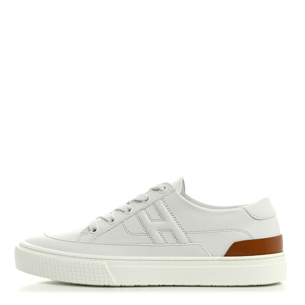 This Hermès Deep sneaker in White Naturel calfskin is a refined take on contemporary sportswear. The smooth leather enhances its luxurious appeal, while the clean design keeps it modern and versatile. Featuring a cushioned sole for superior comfort, it’s designed for all-day ease. Whether paired with tailored separates or relaxed outfits, this sneaker is a stylish everyday essential.