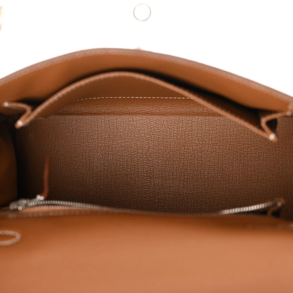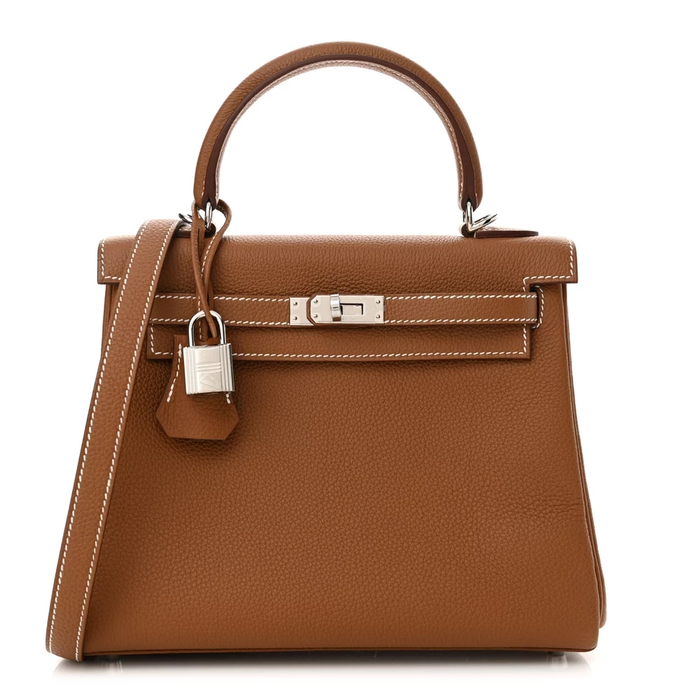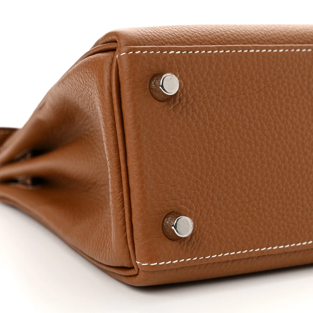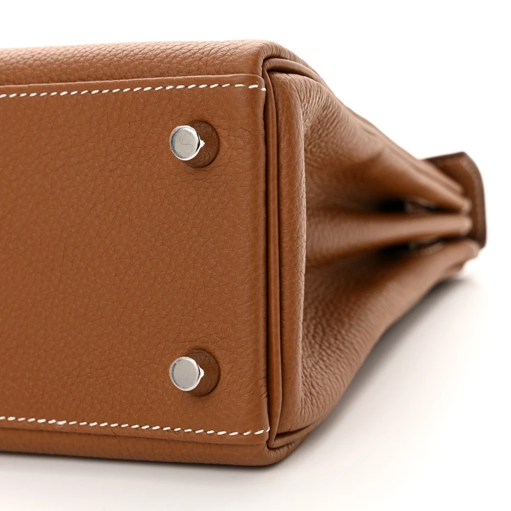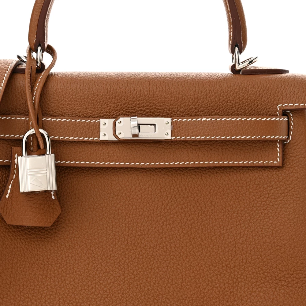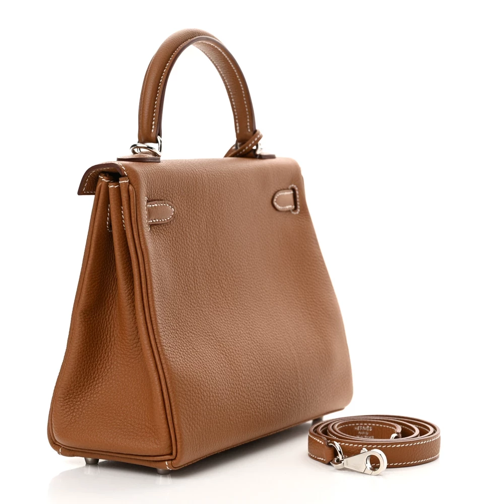 This Hermès Togo Kelly Retourne 25 Gold is a classic and elegant handbag in Hermès’ signature warm caramel shade. The Togo leather provides a soft, grained texture, ensuring both durability and a relaxed shape. The Retourne construction adds to its effortless elegance. Gold hardware complements the rich tones beautifully. This Kelly is a timeless and versatile investment piece.