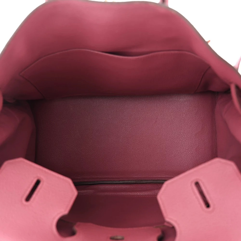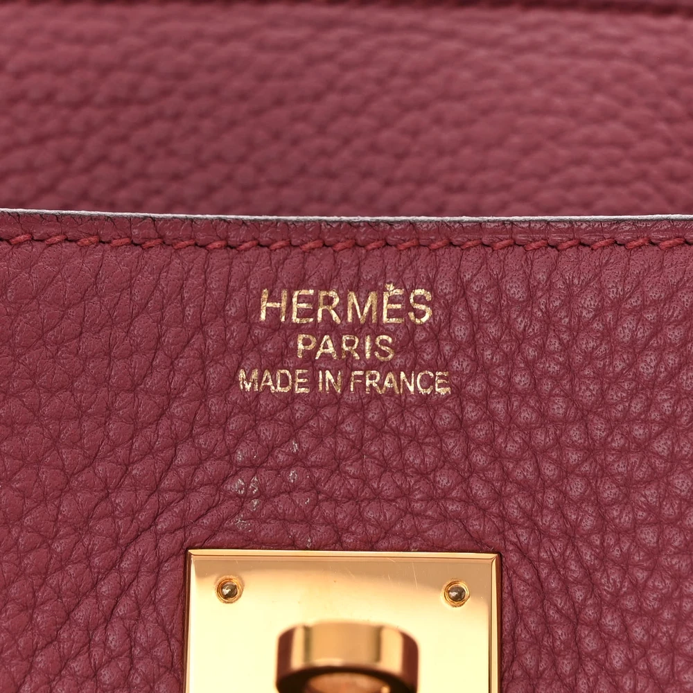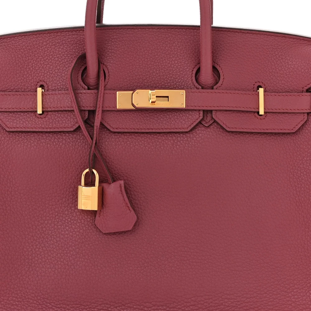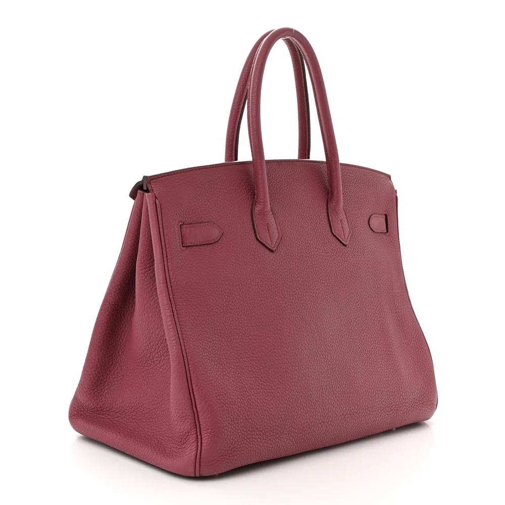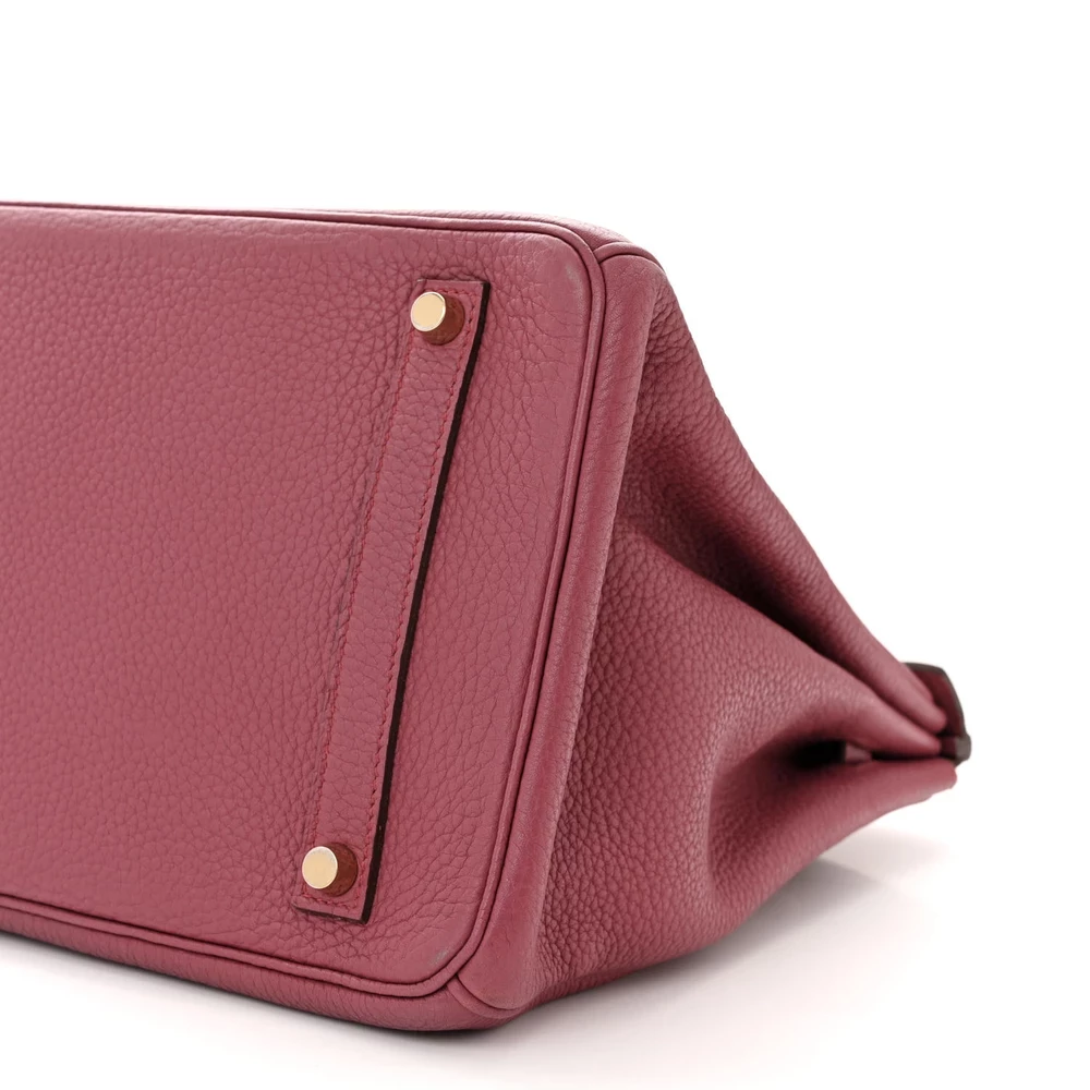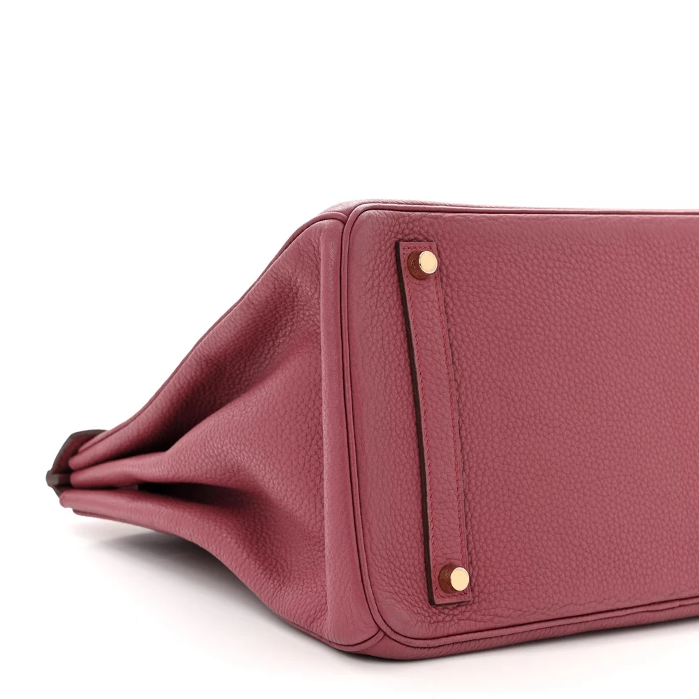 This Hermès Togo Birkin 35 Bois de Rose is a sophisticated handbag in a soft, muted pinkish-brown shade. The Togo leather’s fine grain offers a balance between durability and subtle elegance. The spacious 35 cm size makes it both practical and stylish for everyday wear. Gold hardware adds warmth to the overall aesthetic, creating a luxurious feel. This Birkin is an exquisite choice for those who appreciate refined femininity.