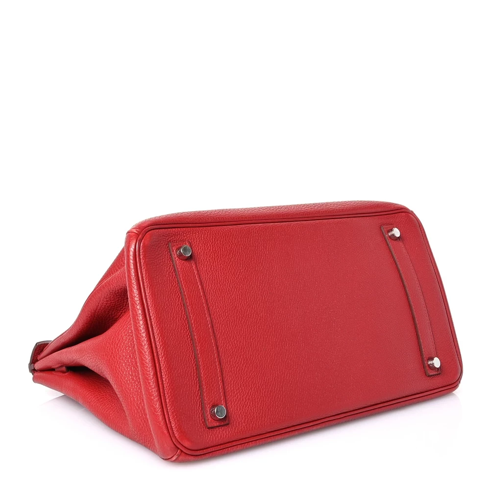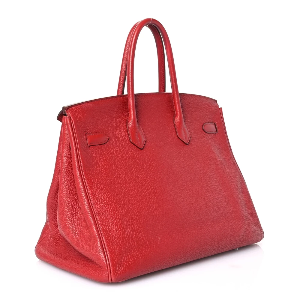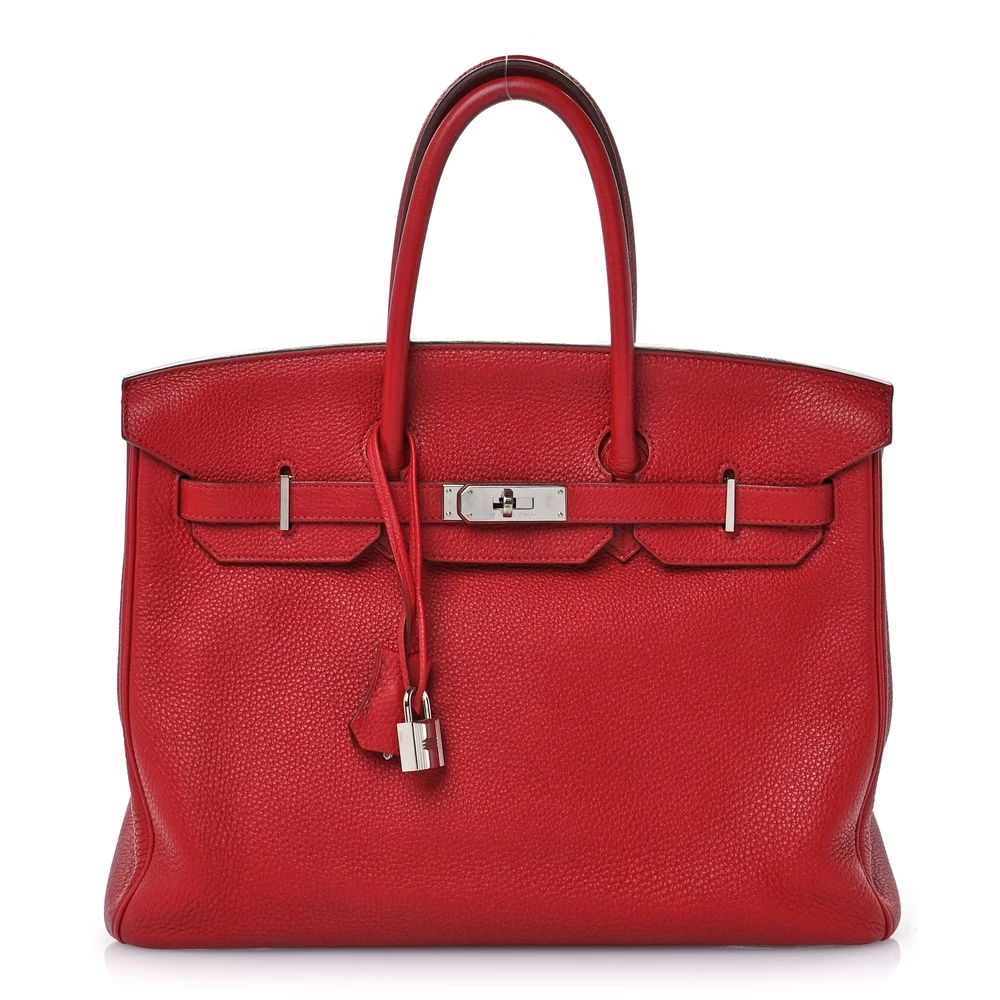 This Hermès Togo Birkin 35 in Rouge Garance is a vibrant and refined handbag in a warm red shade with subtle earthy undertones. The grained Togo leather ensures durability while maintaining a soft, structured feel. Measuring 35 cm, it is ideal for everyday sophistication. Gold hardware complements the rich Rouge Garance hue, adding an extra touch of elegance. This is a statement piece that embodies both confidence and luxury.