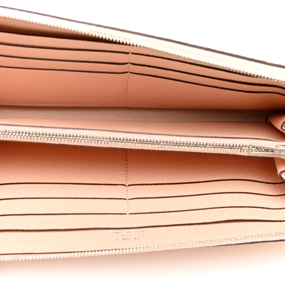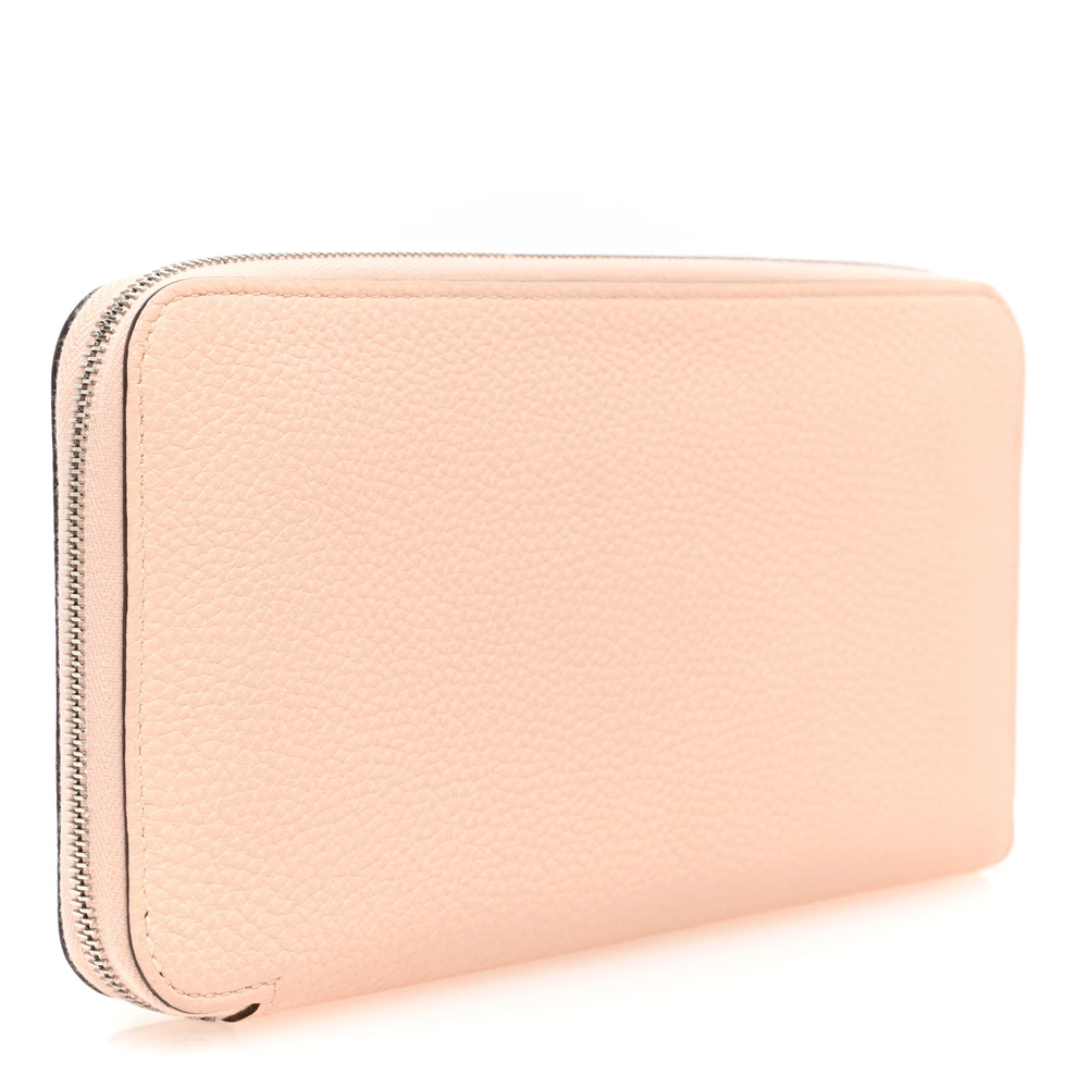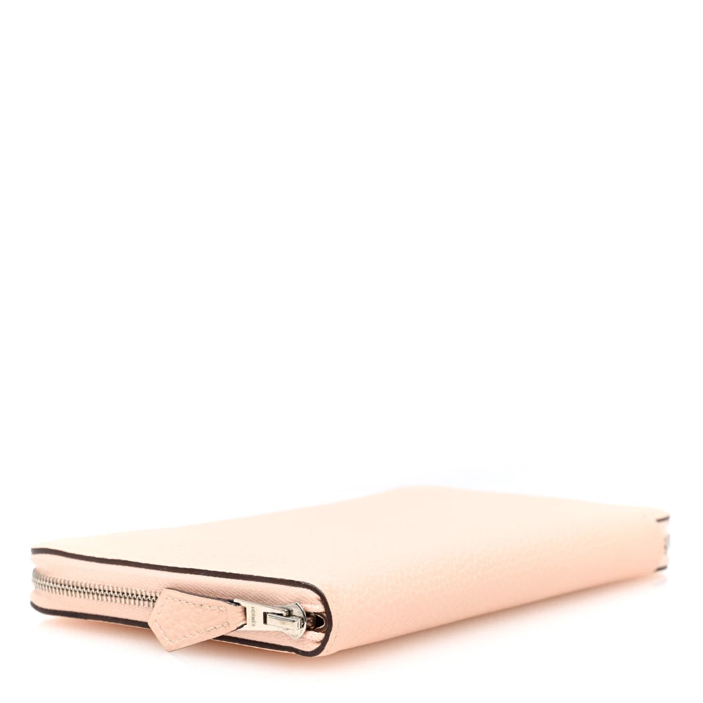This Hermès Epsom Azap Wallet in Rose Eglantine is a sophisticated blend of elegance and functionality. Crafted from luxurious Epsom calfskin leather in a soft pink hue, it exudes timeless charm. The sleek design features a palladium-plated zipper that opens to a thoughtfully partitioned interior with printed leather, card slots, and a central zippered change purse. Perfect as a clutch or an everyday wallet, this piece embodies Hermès’ dedication to refined craftsmanship and classic style.