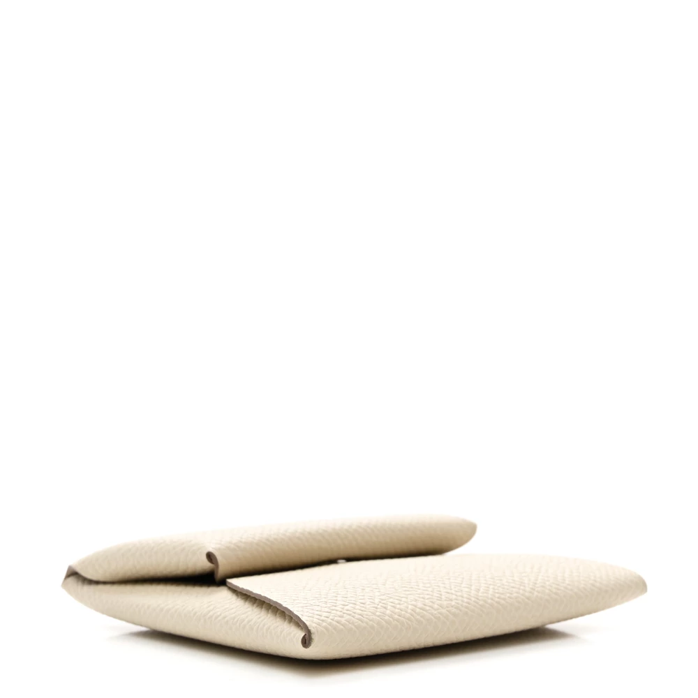 This Hermès Epsom Bastia Coin Purse in Craie is a refined accessory that embodies understated elegance. Crafted from grained Epsom calfskin leather in a soft ivory hue, it exudes timeless sophistication. The structured silhouette is complemented by a discreet snap closure, opening to a matching interior designed to securely hold coins and small essentials. Compact and versatile, this chic coin purse is perfect for slipping into any handbag, offering a subtle touch of Hermès luxury to everyday moments.