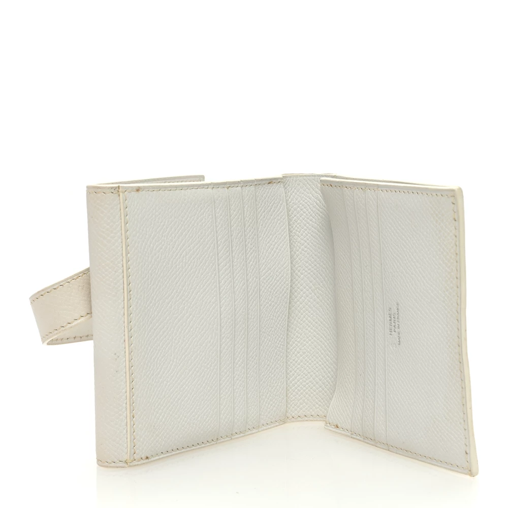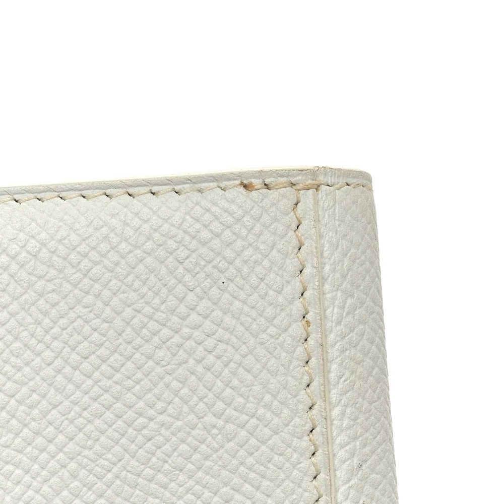 This Hermès Epsom Bearn Recto Verso Wallet in Blanc is the epitome of elegance and versatility. Crafted from richly textured Epsom calfskin leather in a crisp white hue, it features the signature silver palladium Hermes H clasp that adds a refined touch. On one side, the wallet opens to reveal a matching leather interior with a well-organized card slot panel, patch pockets, and a zippered compartment, perfect for storing your essentials. The reverse flap reveals a spacious currency compartment, providing ample room for cash or receipts. This chic wallet is both stylish and functional, making it an essential accessory for anyone who appreciates sophisticated craftsmanship and timeless design.