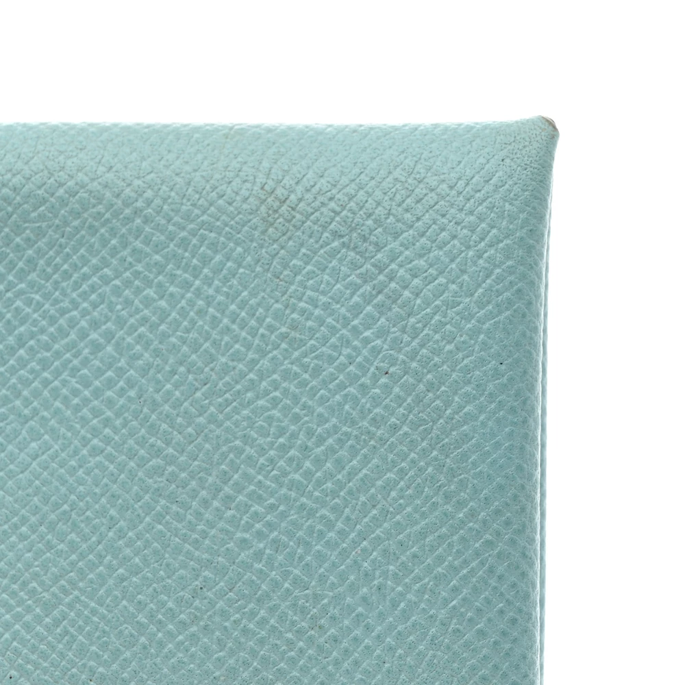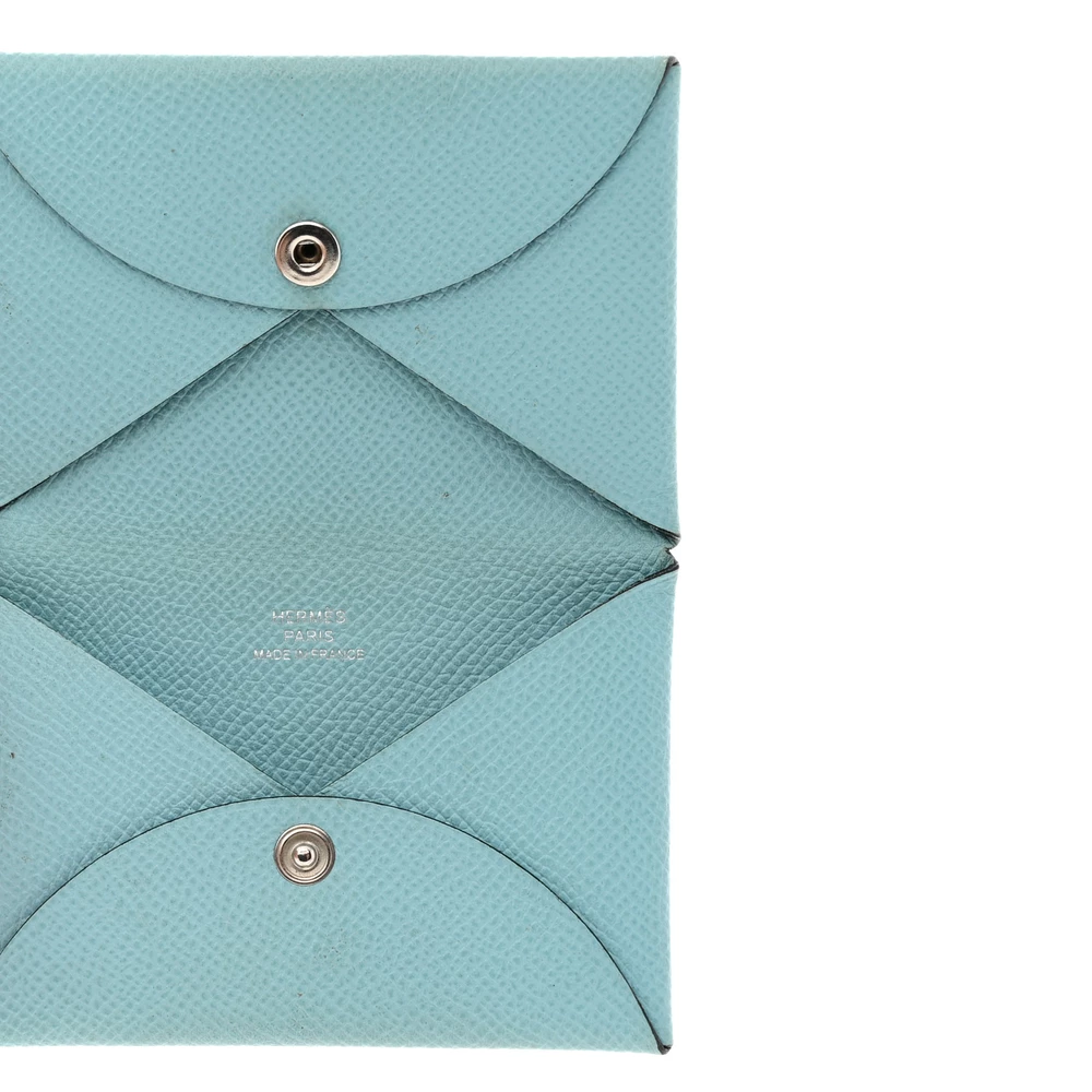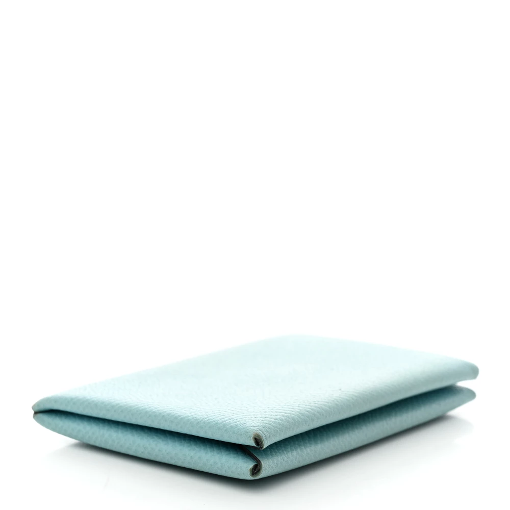 This Hermès Calvi Card Case in Bleu Atoll is a stylish and versatile accessory designed for effortless organization. Crafted from Epsom leather, its structured texture ensures durability while maintaining a polished look. The cleverly designed single-snap closure keeps cards secure, making it a perfect blend of form and function.