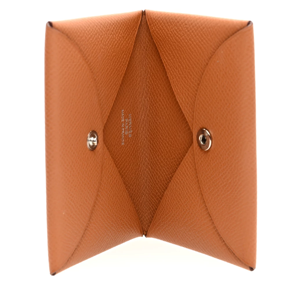 This Hermès Epsom Calvi Card Case in Gold is a sleek and refined accessory that combines functionality with timeless elegance. Crafted from richly grained Epsom calfskin leather in a warm golden brown, this card case features a distinctive origami-folded design on both sides. The snap closure ensures secure storage, while the compact size makes it the perfect addition to any collection. Whether used for business cards or as a minimalist wallet, this Calvi card case exudes sophistication and is an ideal choice for those seeking a high-quality, versatile accessory.