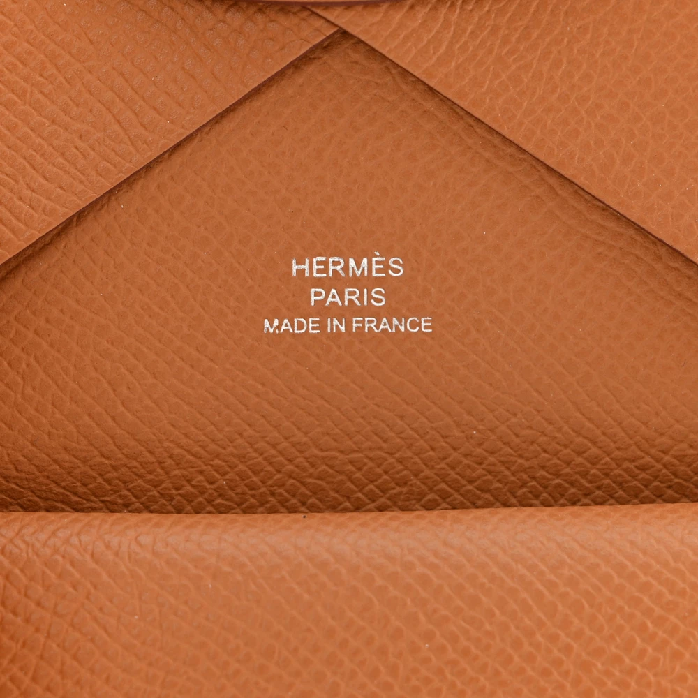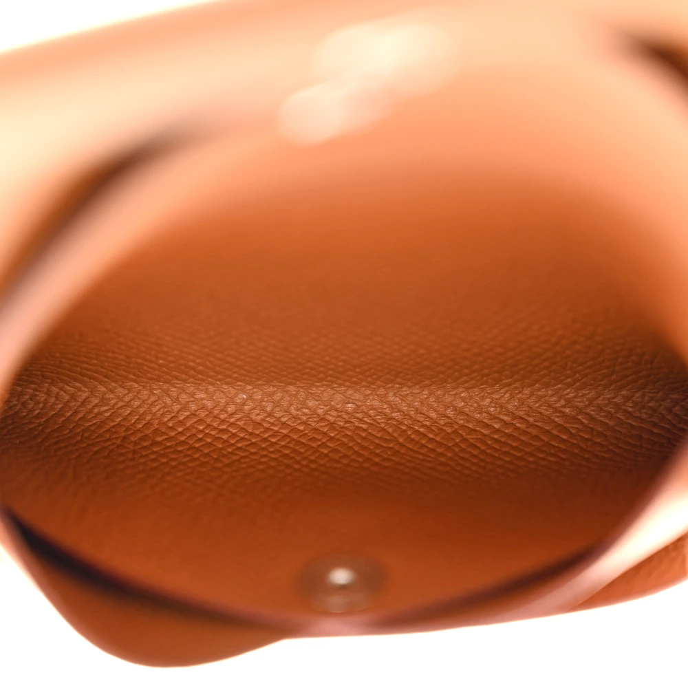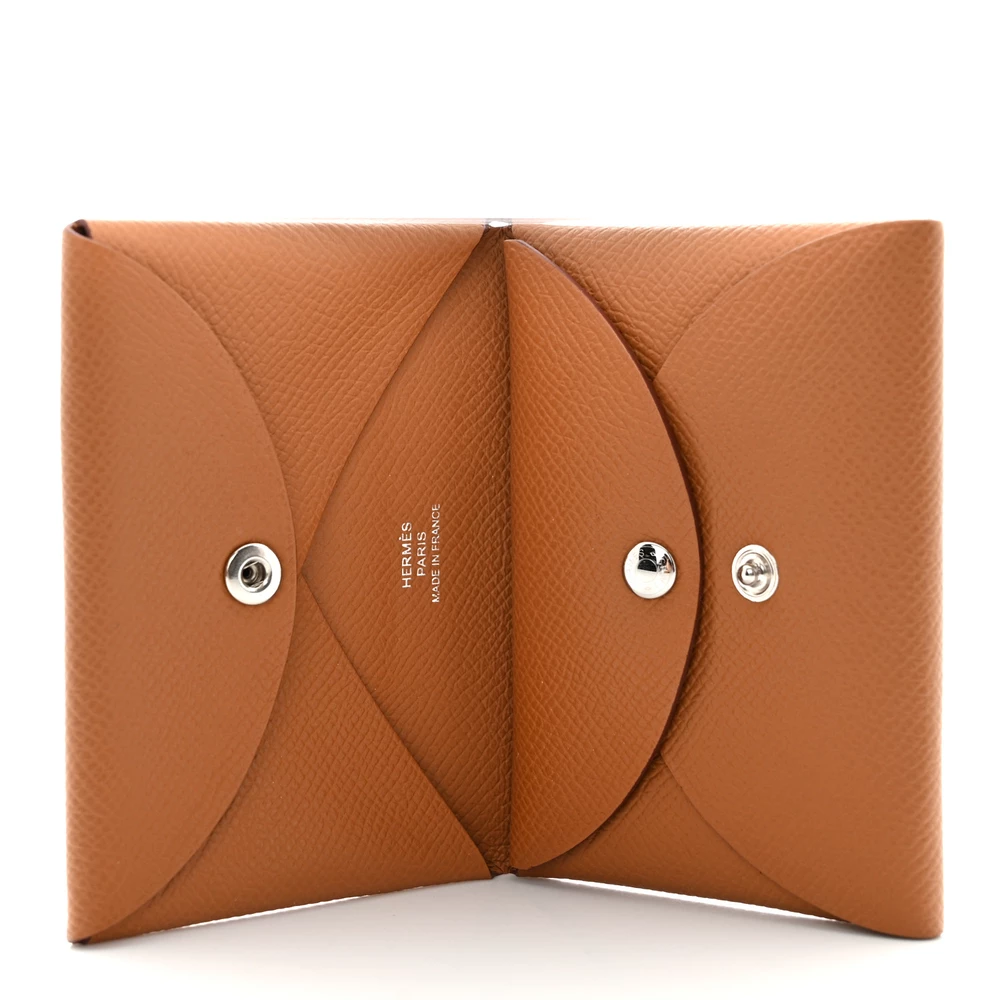 This Hermès Epsom Calvi Duo Card Case in Gold is a refined and functional accessory that exudes sophistication. Crafted from richly grained Epsom calf leather, this card case showcases a warm golden brown hue that adds a touch of luxury to any ensemble. The case opens with a snap closure, revealing an origami-folded pocket on one side, along with a dedicated coin pocket on the other. The compact design is perfect for keeping your essentials organized while maintaining an elegant, minimalist silhouette. A true blend of practicality and Hermès craftsmanship, this card case is an ideal choice for those who value both style and function.