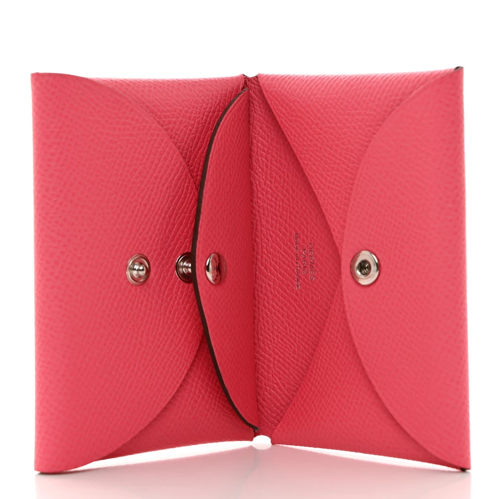 This Hermès Epsom Calvi Duo Card Case in Rose Azalee is a chic and sophisticated accessory that blends practicality with elegance. Crafted from richly grained Epsom calfskin leather in a soft pink hue, this card case exudes a timeless charm. The case opens with a secure snap to reveal origami-style folded pockets on either side, offering a unique and stylish way to store your cards. Compact yet functional, this piece is perfect for those who appreciate refined craftsmanship and a pop of color in their everyday essentials.