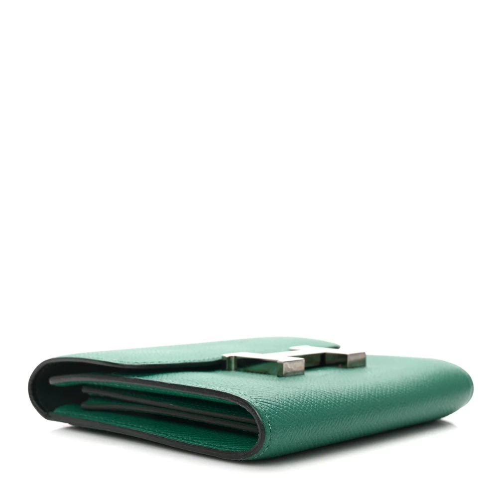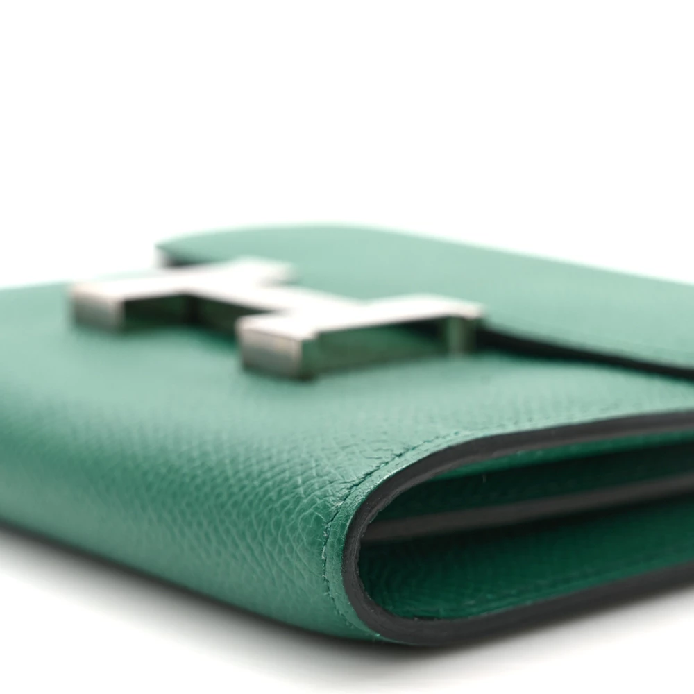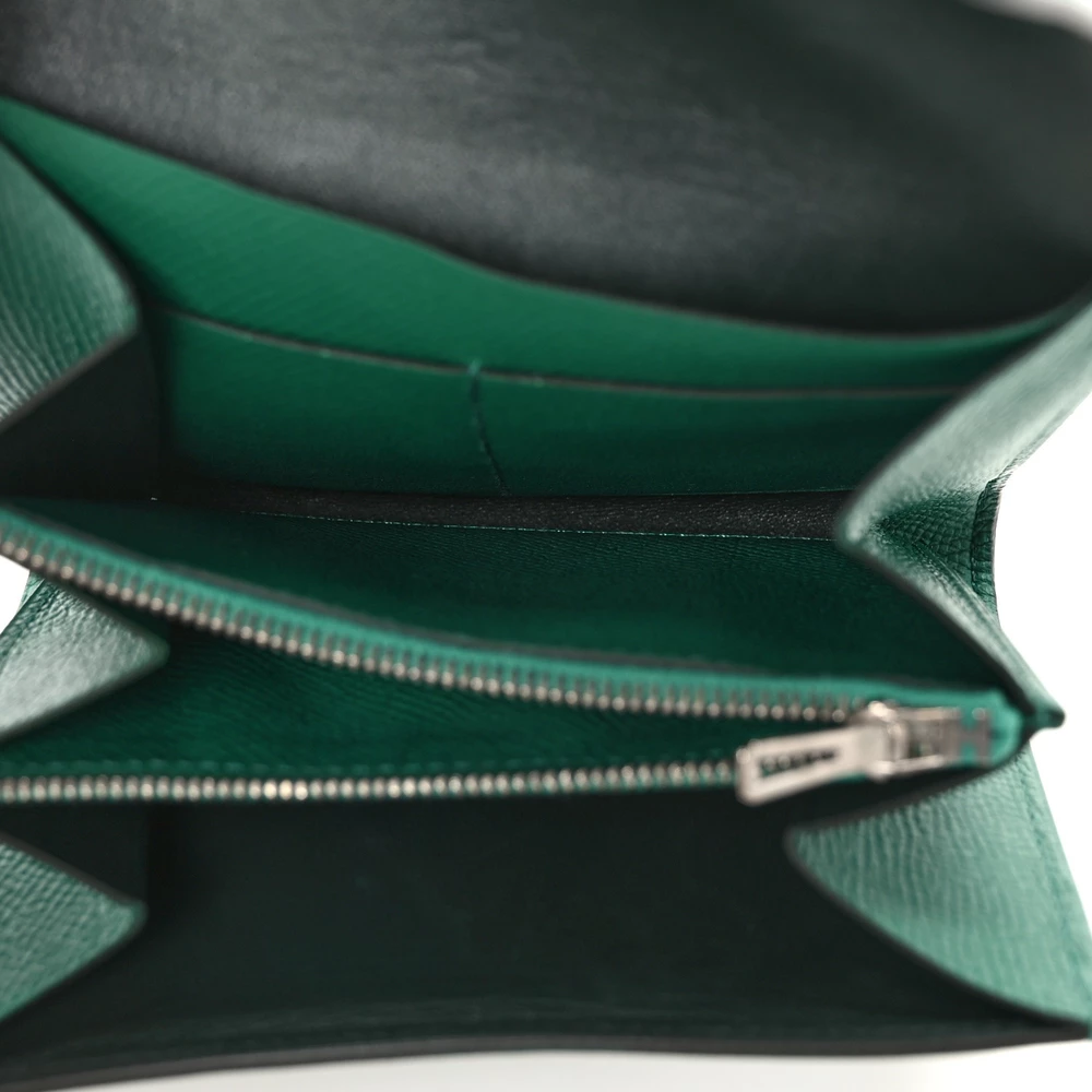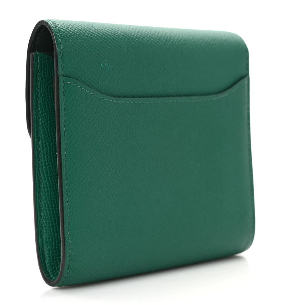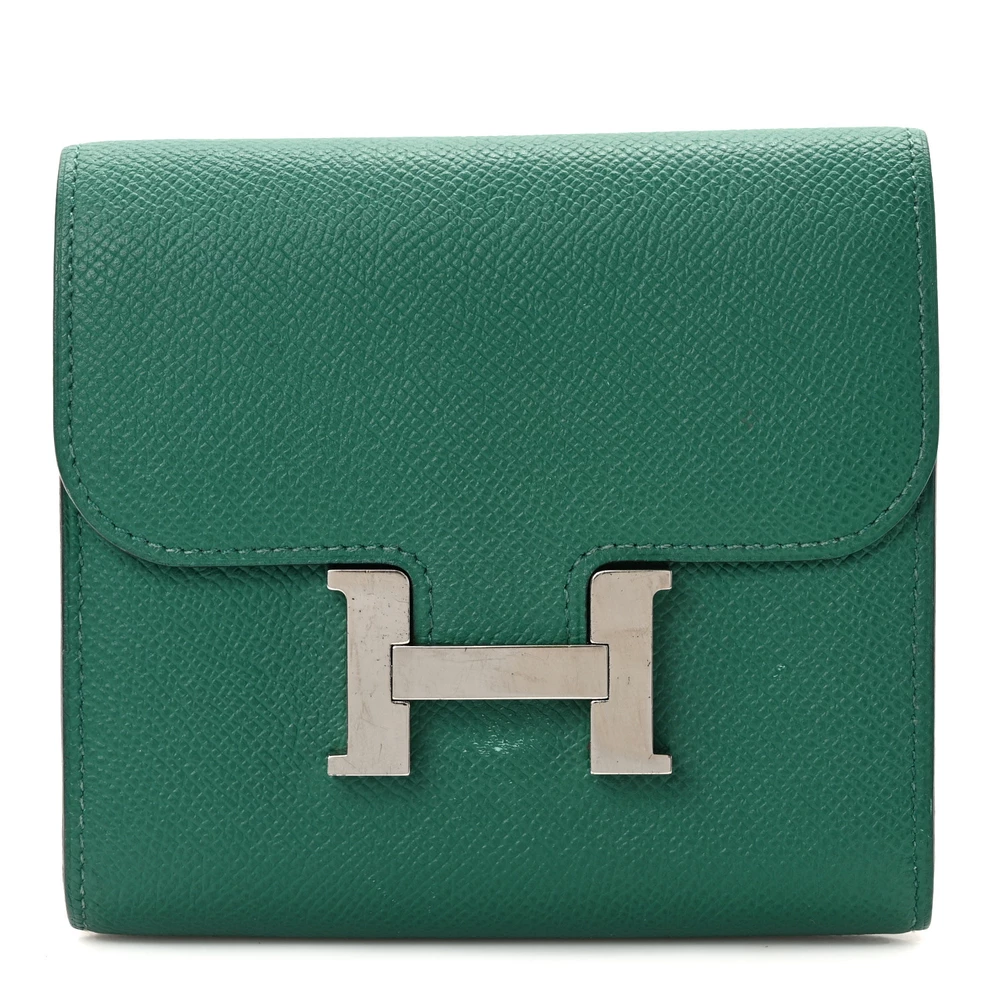 This Hermès Epsom Constance Short Wallet in Green is a stunning and practical accessory that combines refined craftsmanship with everyday functionality. Crafted from premium Epsom calfskin leather in a vibrant green Green hue, it offers both durability and sophistication. The wallet features a top flap that tucks into the iconic “H” clasp in sleek silver palladium hardware, adding a touch of elegance to the design. Upon opening, the wallet reveals a cross-grain compact interior, thoughtfully partitioned with card slots and a zipper pocket for organization. This chic wallet is the perfect blend of style and practicality, making it a versatile addition to any collection.