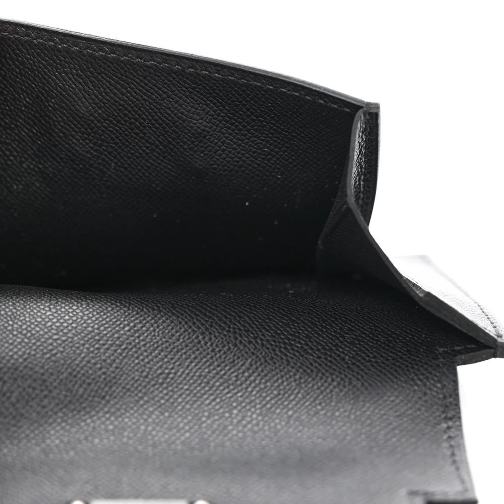 This Hermès Epsom Kelly Pocket Compact Wallet in Black is a refined and elegant accessory that embodies the sophistication of the iconic Kelly design. Crafted from Epsom calfskin leather, known for its durability and structured finish, this wallet features a sleek black hue that adds a timeless touch to its appeal. The palladium silver Kelly signature turn-lock is a luxurious finishing detail, elevating the wallet’s classic style.