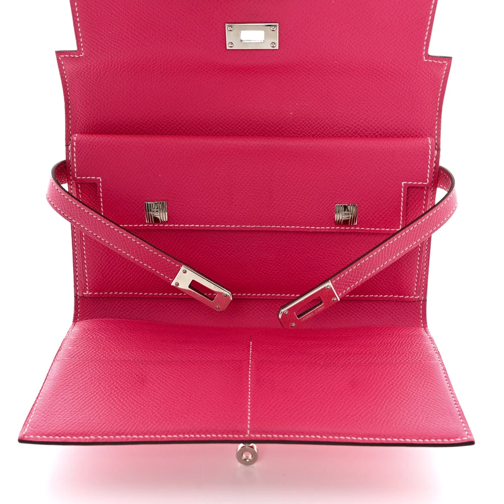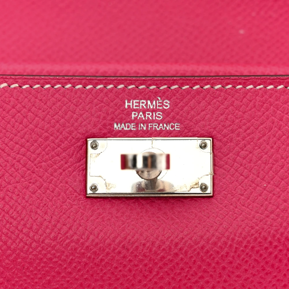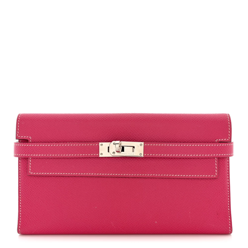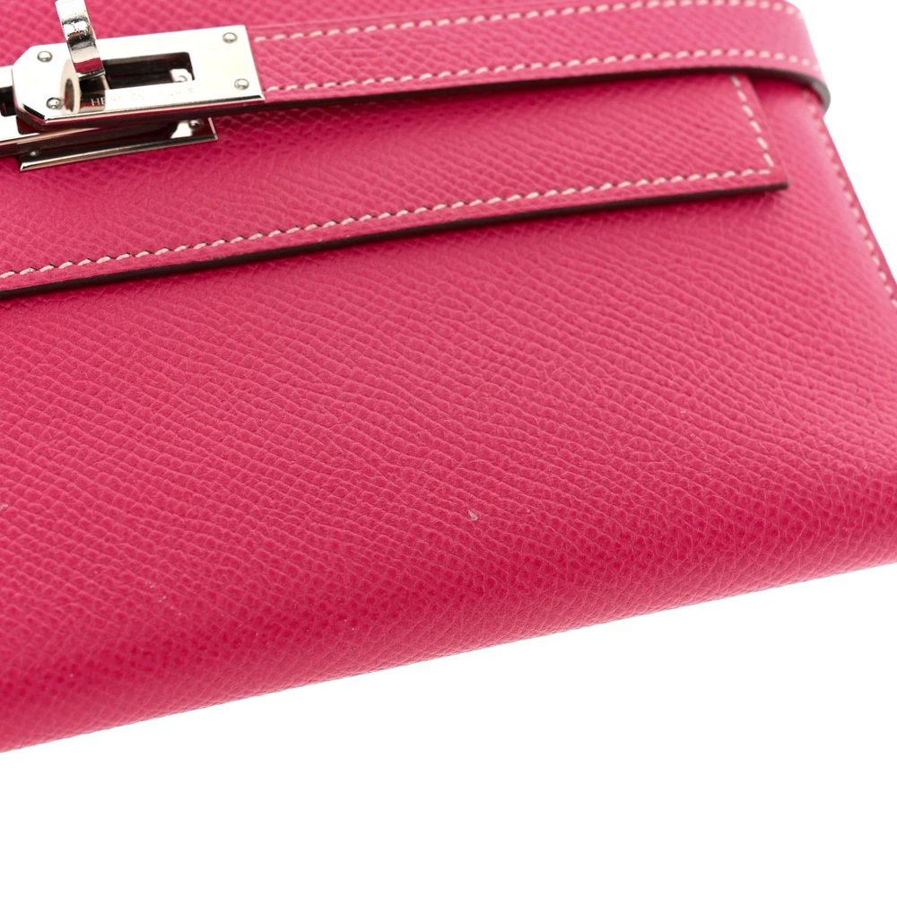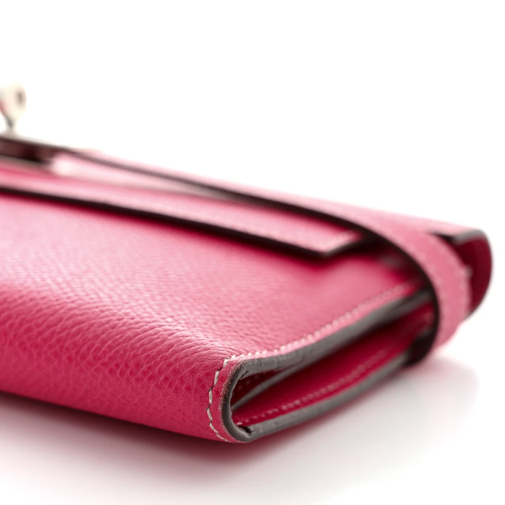 This guaranteed Hermès Epsom Kelly Tri-Fold Wallet in Rose Tyrien is a sophisticated and chic accessory that combines elegance with functionality. Crafted from fine Epsom calfskin leather in a soft, feminine pink hue, this wallet features a sleek frontal flap secured by a signature palladium silver turn lock and padlock, adding a touch of classic Hermès luxury. The tri-fold design opens to reveal a well-organized interior, complete with card slots, patch pockets, and a currency compartment, offering both style and practicality. This exquisite piece is a perfect addition to any collection, embodying the timeless appeal and craftsmanship of Hermès.