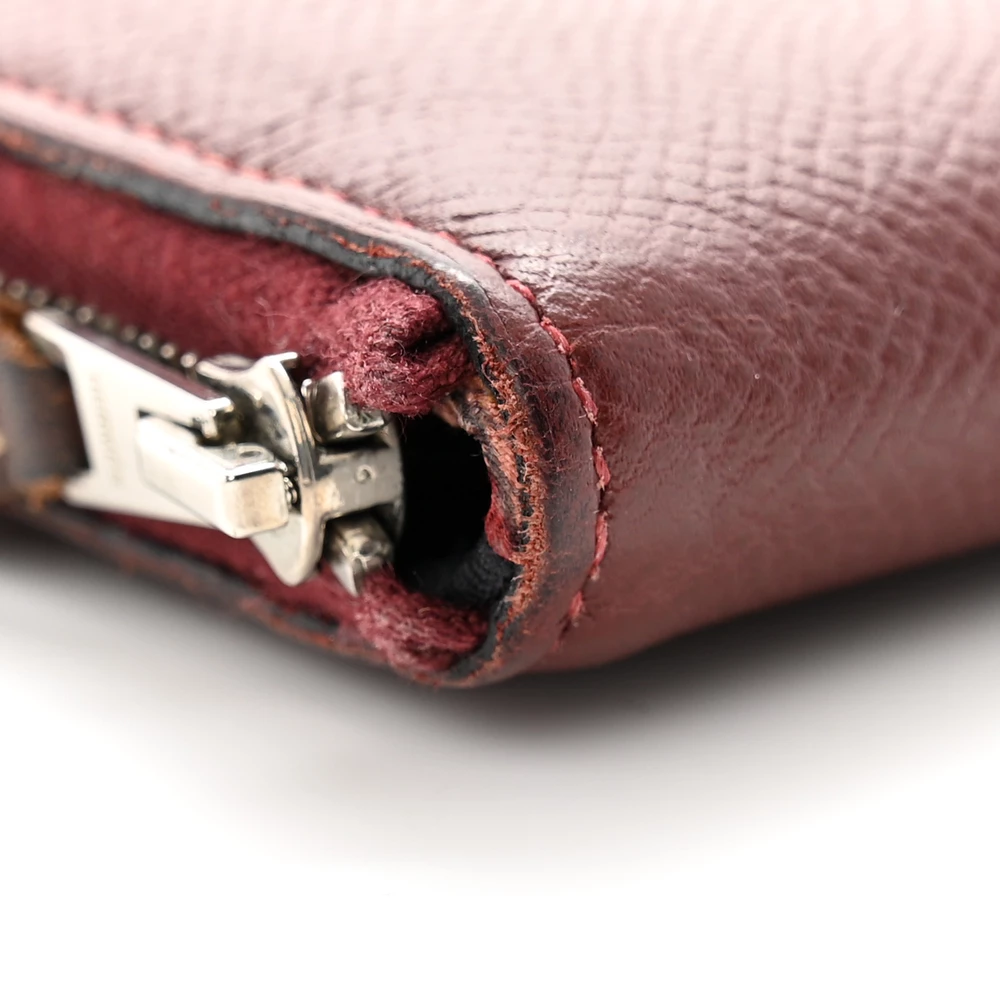 This Hermès Epsom Silk’in Compact Wallet in Rouge H is an exquisite example of elegance and craftsmanship. Crafted from rich Epsom calfskin leather in a deep burgundy hue, it exudes sophistication and timeless charm. The wallet features a sleek palladium zipper, which opens to reveal a beautifully partitioned interior, showcasing a luxurious printed silk lining. Inside, you’ll find ample space with card slots and a zippered compartment for secure storage of your essentials. This compact wallet combines the beauty of Hermès’ signature leather with a touch of silk, making it a perfect blend of style and functionality for any discerning collector.