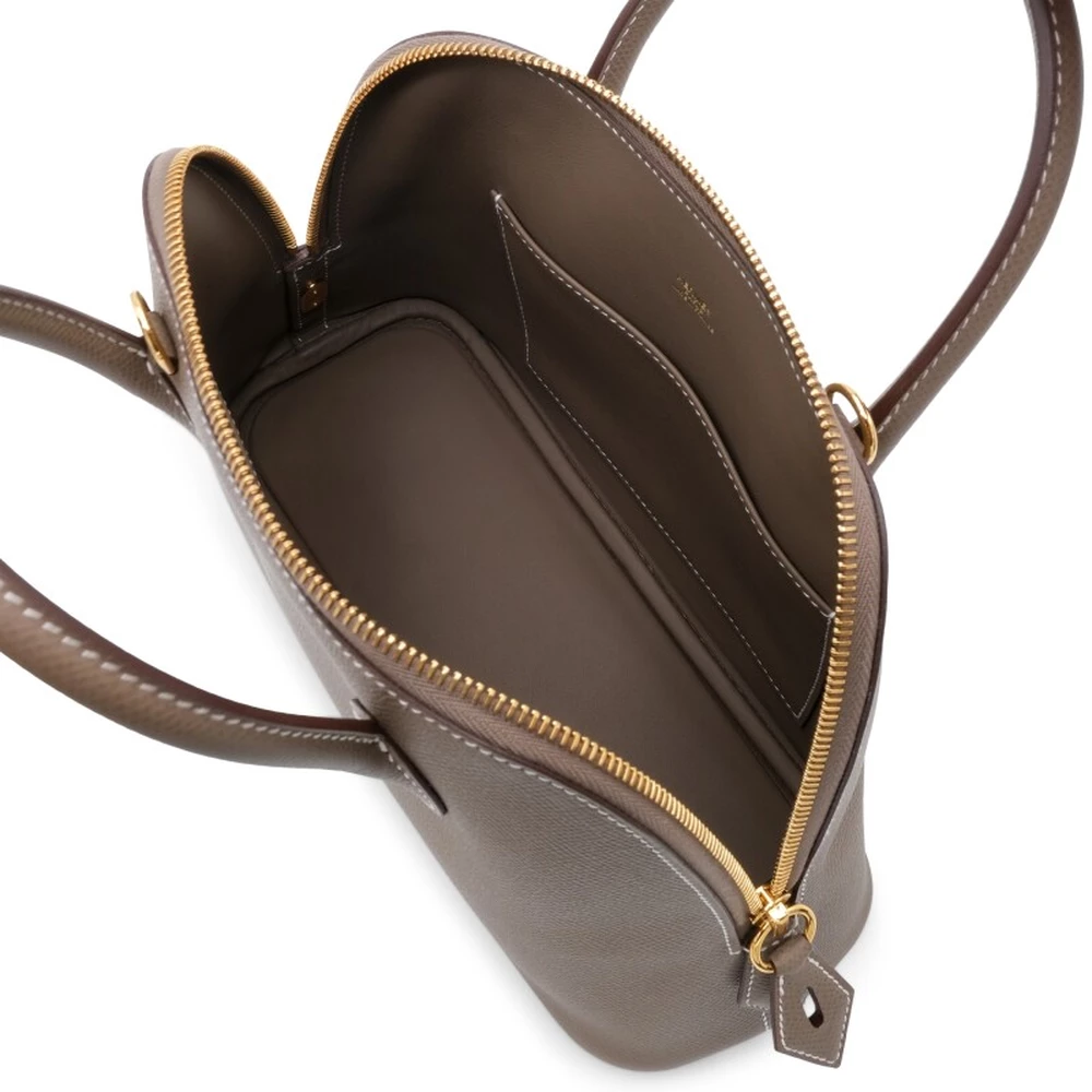 This Hermès Bolide 25 1923 in Etoupe Epsom Leather is a refined and understated handbag in a soft taupe shade. The structured Epsom leather ensures a sleek and polished silhouette, making it effortlessly elegant. Gold hardware adds warmth and sophistication. A timeless piece that blends modern style with classic luxury.