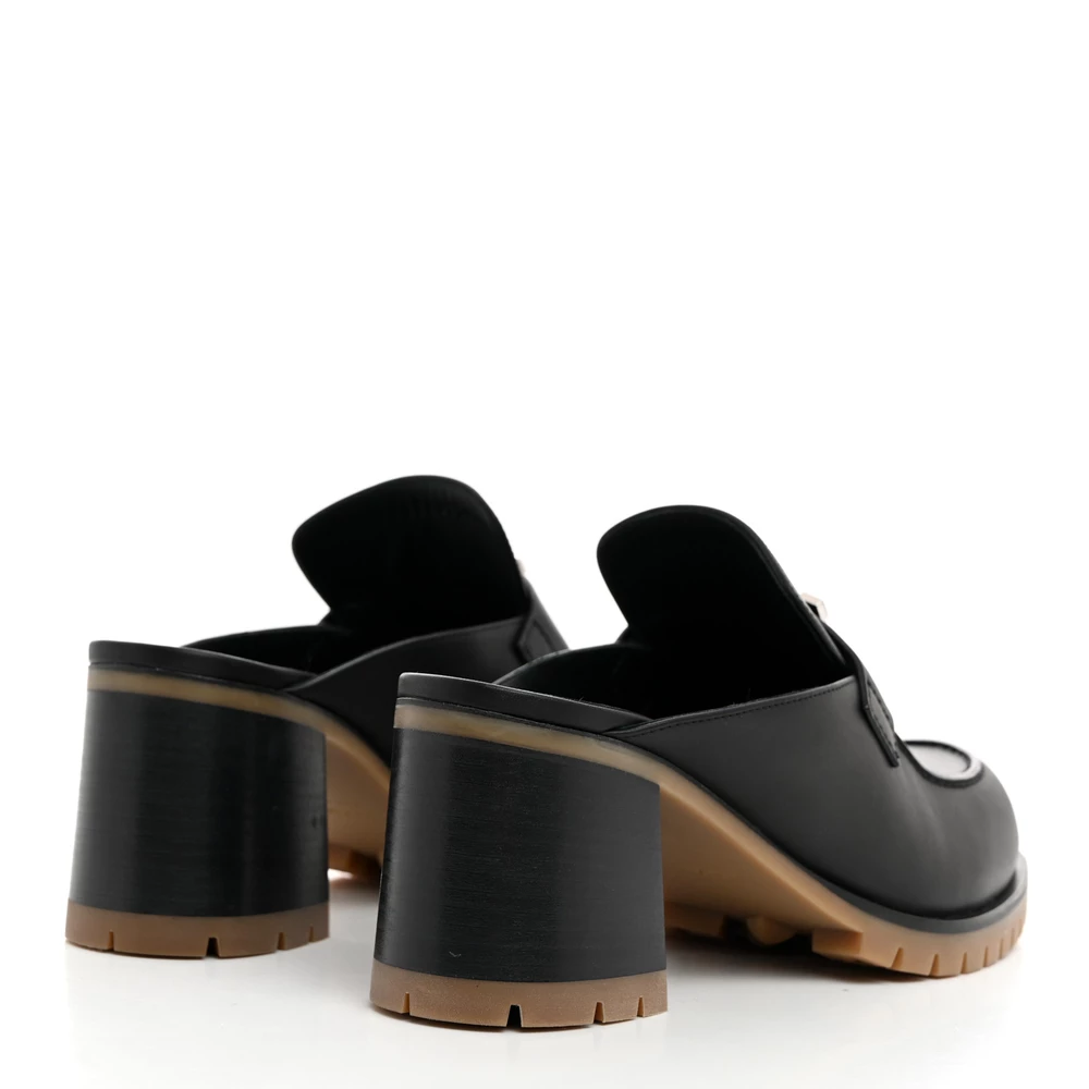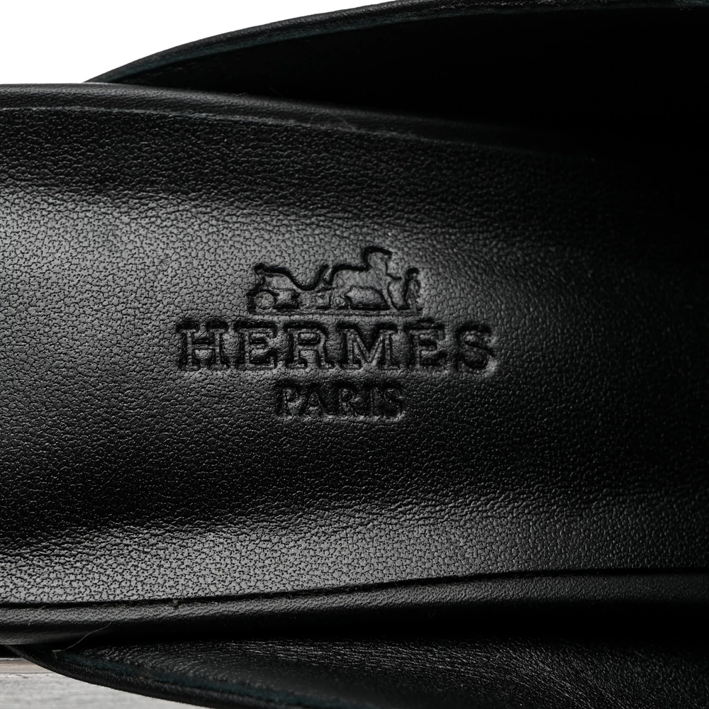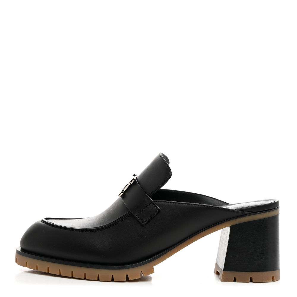 This Hermès Flore 60 mule in Black calfskin is a refined and elegant footwear choice. The smooth leather enhances its timeless appeal, while the 60mm block heel adds height without compromising comfort. Designed for easy slip-on wear, it offers a sleek silhouette with a touch of sophistication. Whether worn for daytime chic or evening refinement, this mule complements any polished wardrobe.