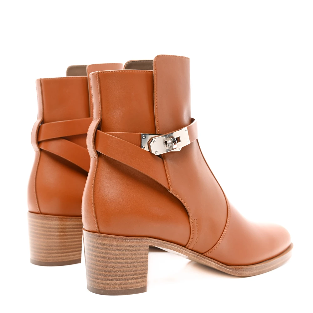 This Hermès Frenchie 50 ankle boot in Naturel calfskin is a chic and structured addition to any wardrobe. The smooth leather construction enhances its timeless appeal, while the 50mm heel provides just the right amount of elevation. Designed with a sleek silhouette, it balances modern style with classic craftsmanship. Whether worn with tailored ensembles or casual looks, this boot exudes understated elegance.