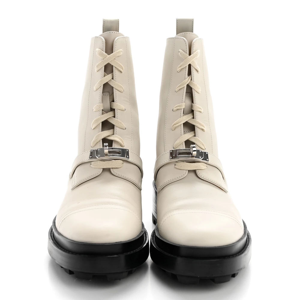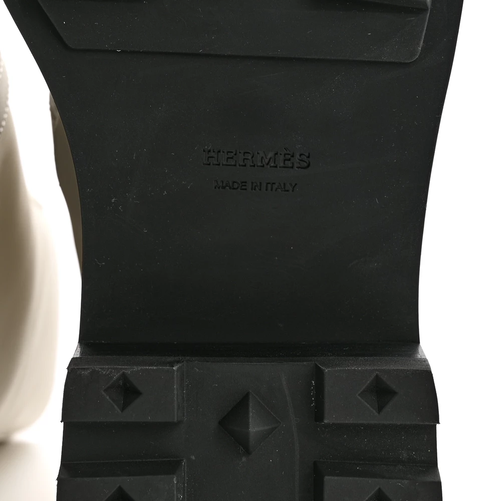 This Hermès Funk ankle boot in Beige Glaise glossed calfskin is a sleek and contemporary footwear choice. The glossy finish enhances its refined appeal, while the neutral beige hue offers effortless versatility. Designed for both casual and dressy occasions, it features a comfortable fit and a modern silhouette. Whether paired with structured tailoring or relaxed denim, this boot adds a touch of understated luxury.