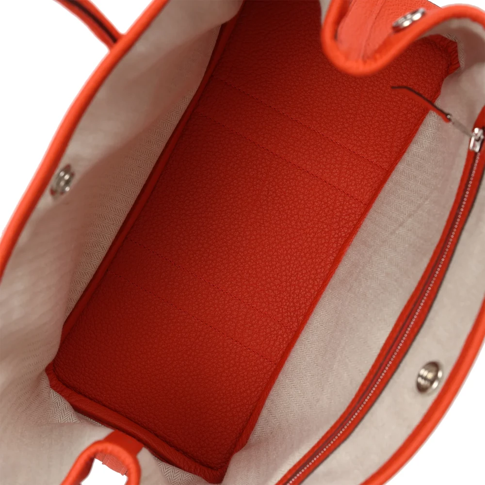 This Hermès Garden Party 30 in Capucine Negonda leather is a luxurious and striking piece, enhanced by palladium hardware. Its rich orange-red hue exudes confidence and energy, making it a standout accessory for any occasion. Lightweight and functional, it effortlessly combines style and practicality. A true reflection of Hermès’ artistry, it is a timeless piece for any collection.