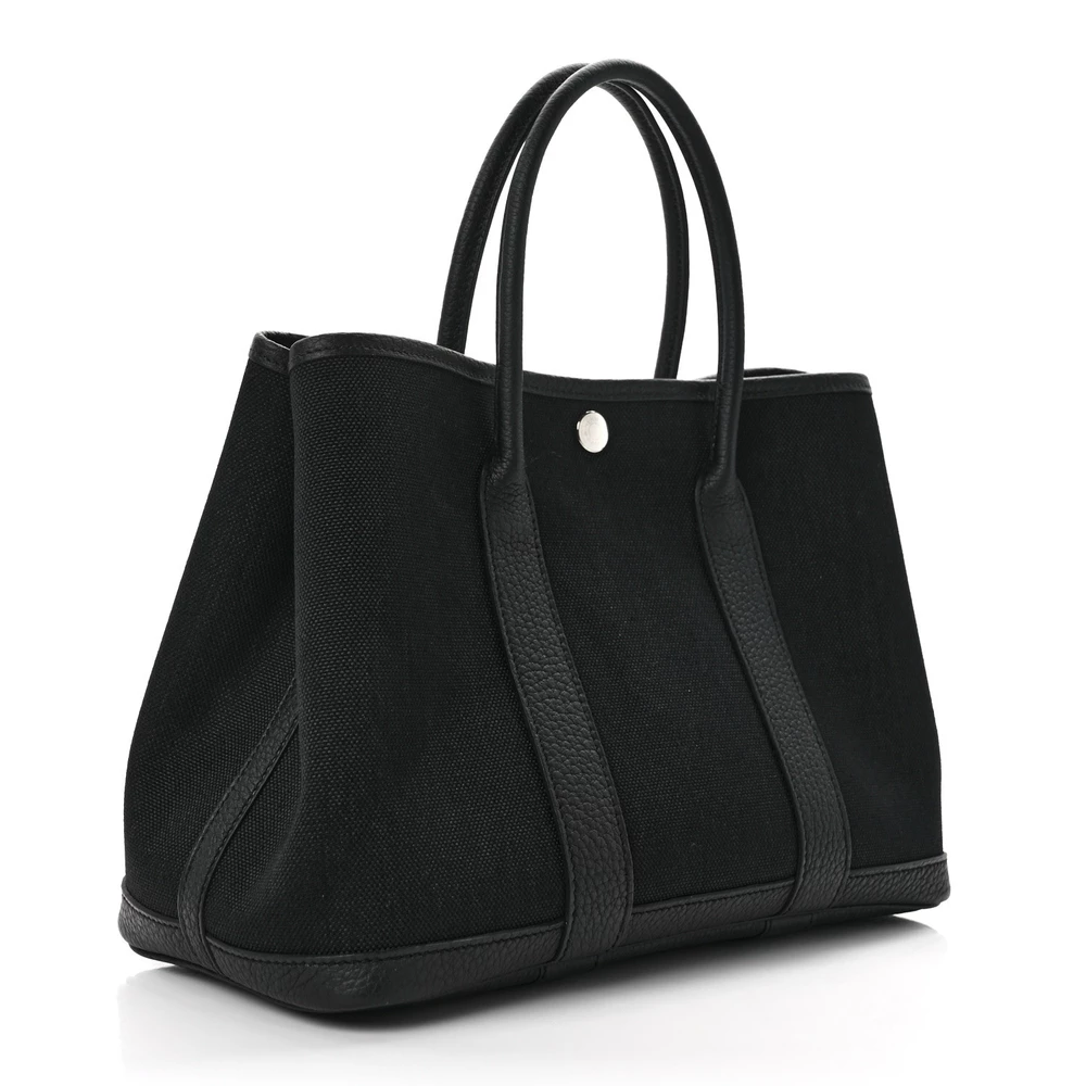 This Hermès Garden Party 30 TPM in Black Toile & Negonda Leather is a timeless and understated handbag with a refined combination of canvas and leather. The durable Toile fabric provides a relaxed aesthetic, while the Black Negonda leather accents add sophistication. This minimalist design is perfect for effortless everyday style.