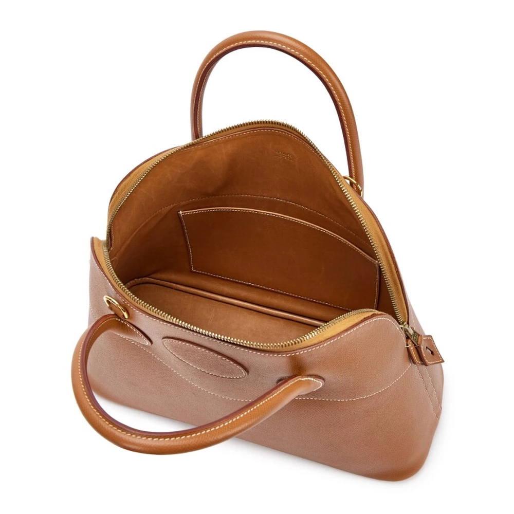 This Hermès Bolide 35 in Gold Courchevel Leather is a rare and exquisite vintage find from 1996. The Courchevel leather offers a structured yet lightweight feel, making it both durable and elegant. Gold hardware enhances its warm tone, creating a timeless aesthetic. Spacious and sophisticated, it’s a perfect collector’s piece.