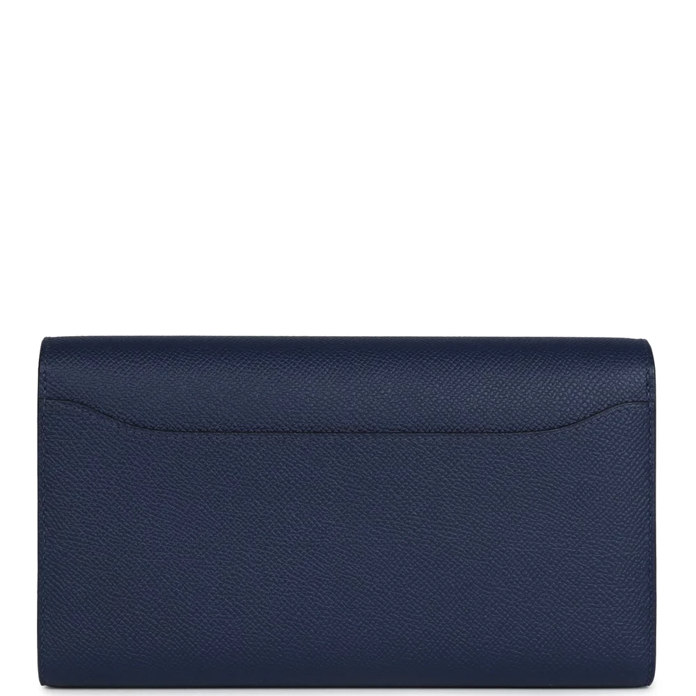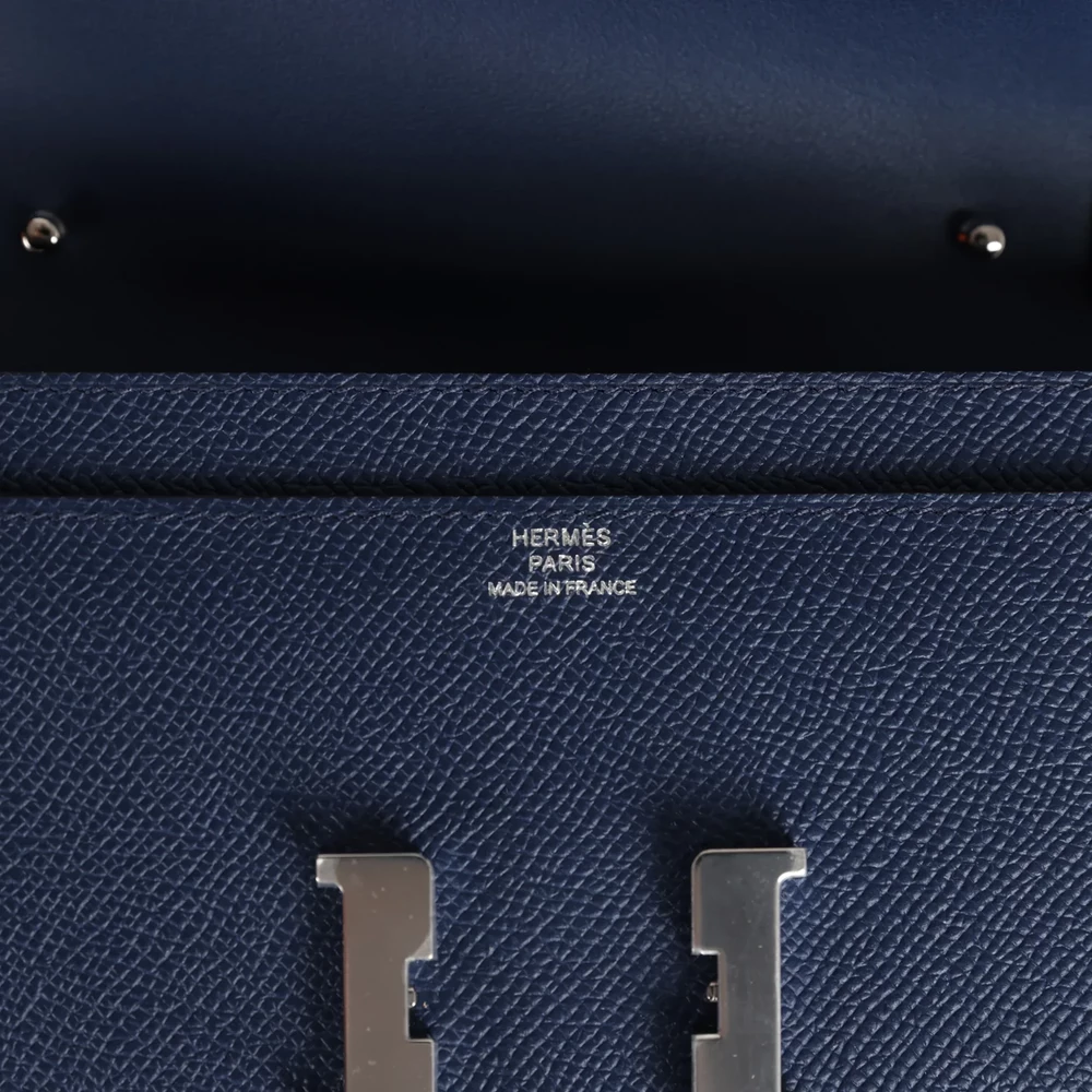 This Hermès Constance Wallet To Go in Bleu Navy is a timeless and versatile piece. Made from Epsom leather, its structured texture enhances the rich navy hue, creating a classic yet modern aesthetic. The signature “H” clasp in palladium hardware adds a polished touch, while the crossbody strap offers ease of wear. Designed for those who appreciate understated elegance, this wallet is a must-have staple.