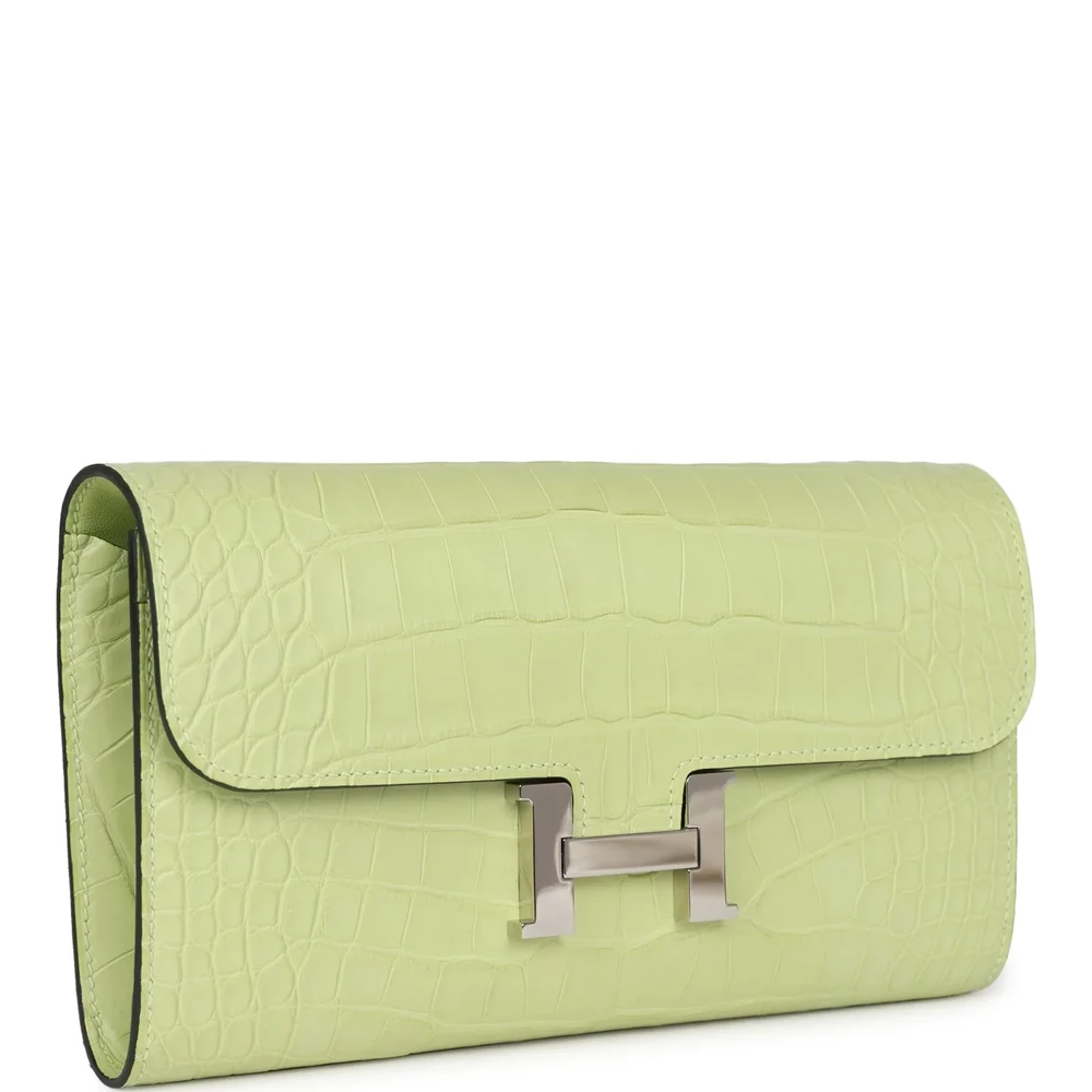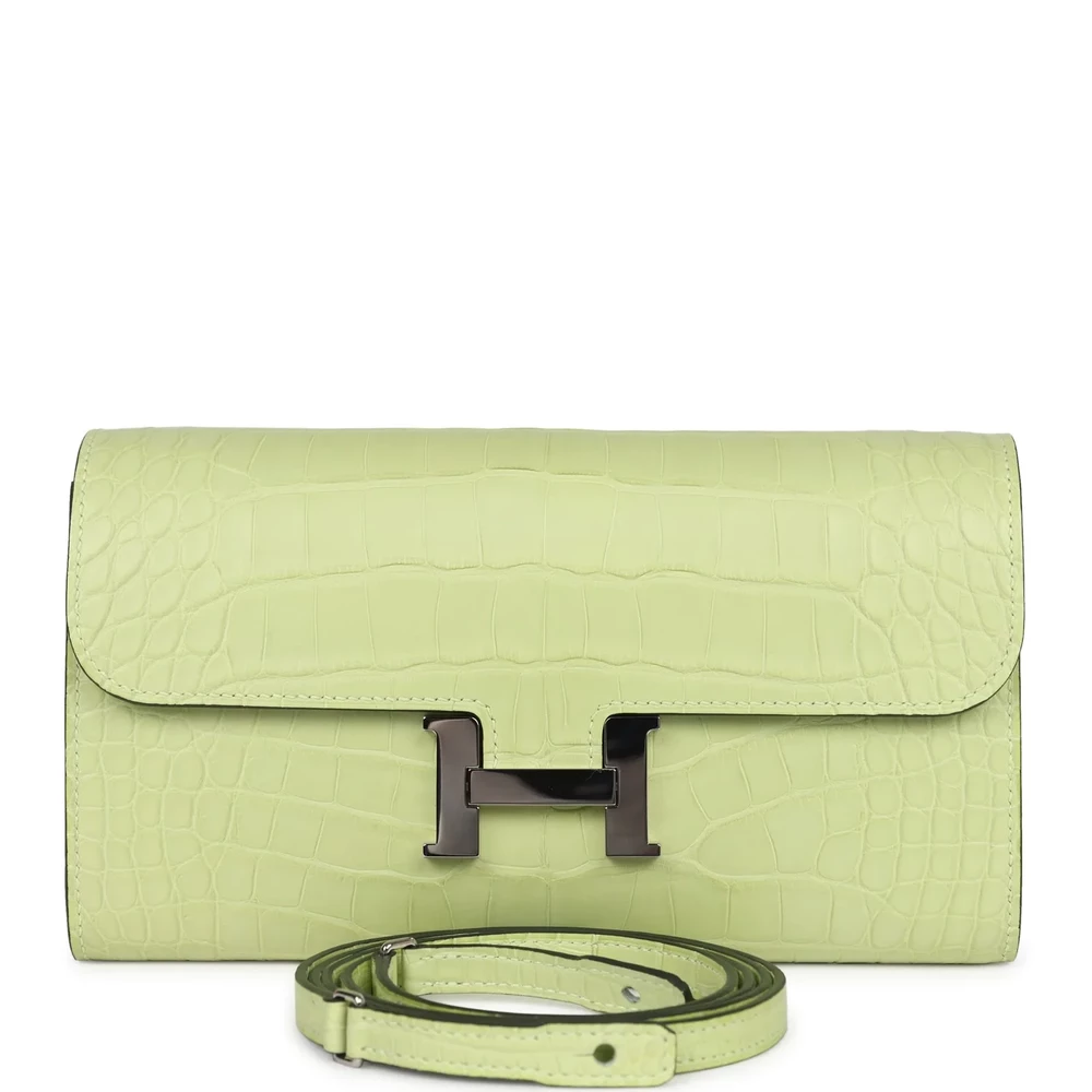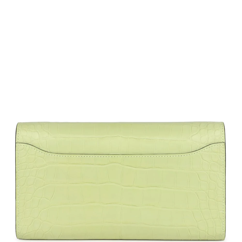 This Hermès Constance To Go Wallet in Jaune Bourgeon is a radiant and eye-catching piece. Made from matte alligator Mississippiensis leather, its rich texture enhances the vibrant yellow hue, creating an elegant yet bold aesthetic. The signature “H” clasp in palladium hardware adds a sophisticated contrast, while the detachable strap ensures ease of wear. Designed for timeless luxury, this wallet is a true statement of refined elegance.