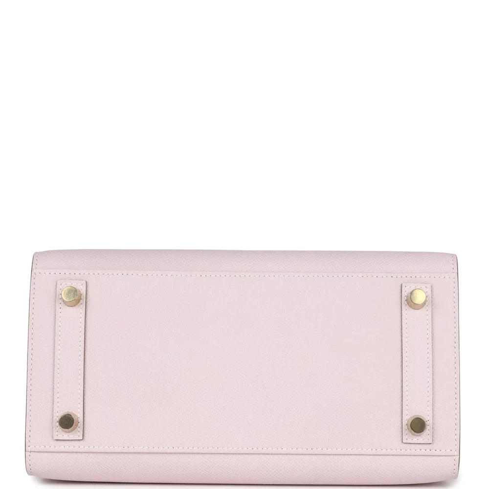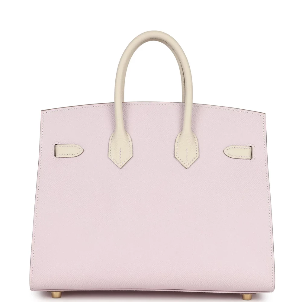 This Hermès Special Order Bi-color Sellier Birkin is crafted from Mauve Pale and Craie Epsom leather with brushed gold hardware, offering a striking and elegant design. The bag features tonal stitching, a front flap with two straps, and a center toggle closure for added security. A clochette with a lock and two keys adds extra sophistication, while the double rolled handles ensure comfort during carrying. The interior is lined with Craie Chevre leather, providing a smooth, luxurious touch. It includes one zip pocket with an Hermès engraved zipper pull, and an open pocket on the opposite side for convenient storage.