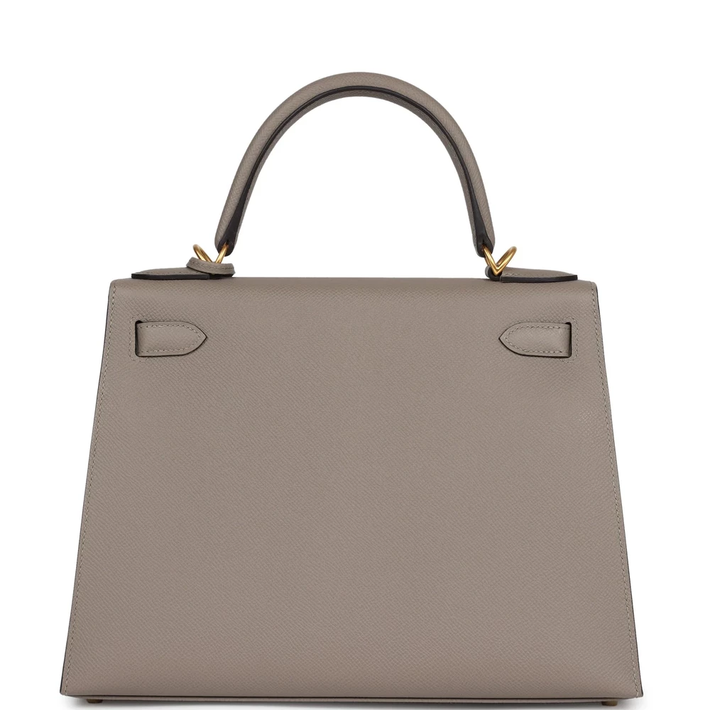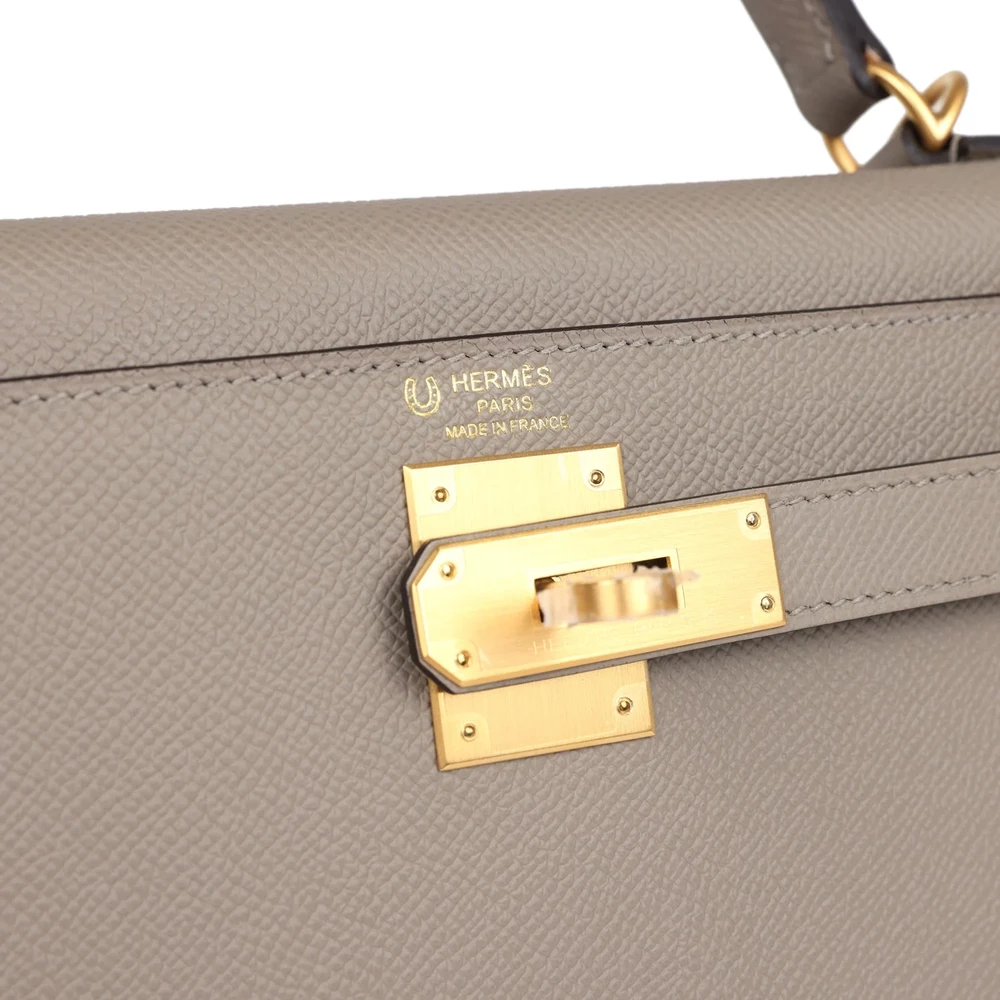 This Hermès Special Order Kelly Sellier 28 in Gris Asphalte is a rare and luxurious masterpiece. Made from durable Epsom leather, it features a unique Verso design. The Brushed Gold hardware adds a modern touch. Its deep gray hue is perfect for making a bold statement. The structured silhouette ensures timeless elegance. A must-have for collectors. This bag is a true Hermès treasure.