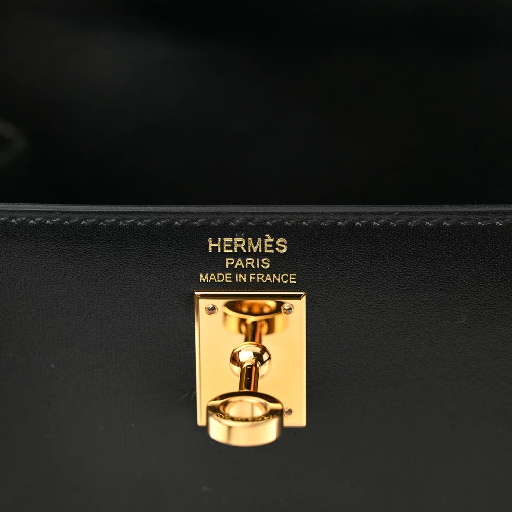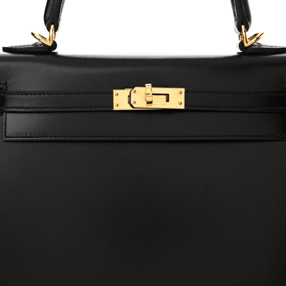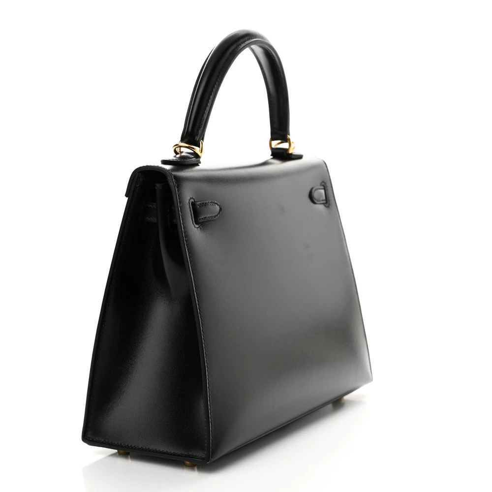 This Hermès Box Kelly Sellier 25 Black is a sleek and structured handbag crafted from smooth Box leather. The glossy finish enhances its sophisticated and timeless appeal. The Sellier construction maintains a sharp and elegant silhouette. Gold hardware adds a touch of warmth and luxury. This Kelly is a refined and iconic choice for collectors and fashion connoisseurs.