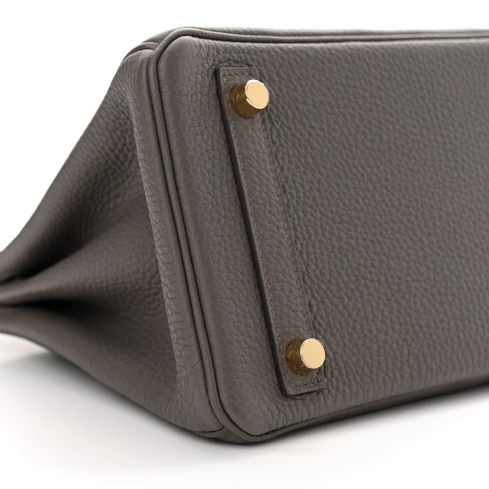 This Hermès Togo Birkin 25 in Etain is a chic and versatile piece that complements any wardrobe. Made from durable Togo leather, it features a slightly grained texture that enhances its sophisticated appeal. The cool-toned Etain shade is a neutral gray that pairs beautifully with both casual and formal outfits. The compact 25 cm size makes it an ideal choice for those who prefer a more petite yet statement-making bag. With palladium-plated hardware completing the design, this Birkin is both modern and timeless.