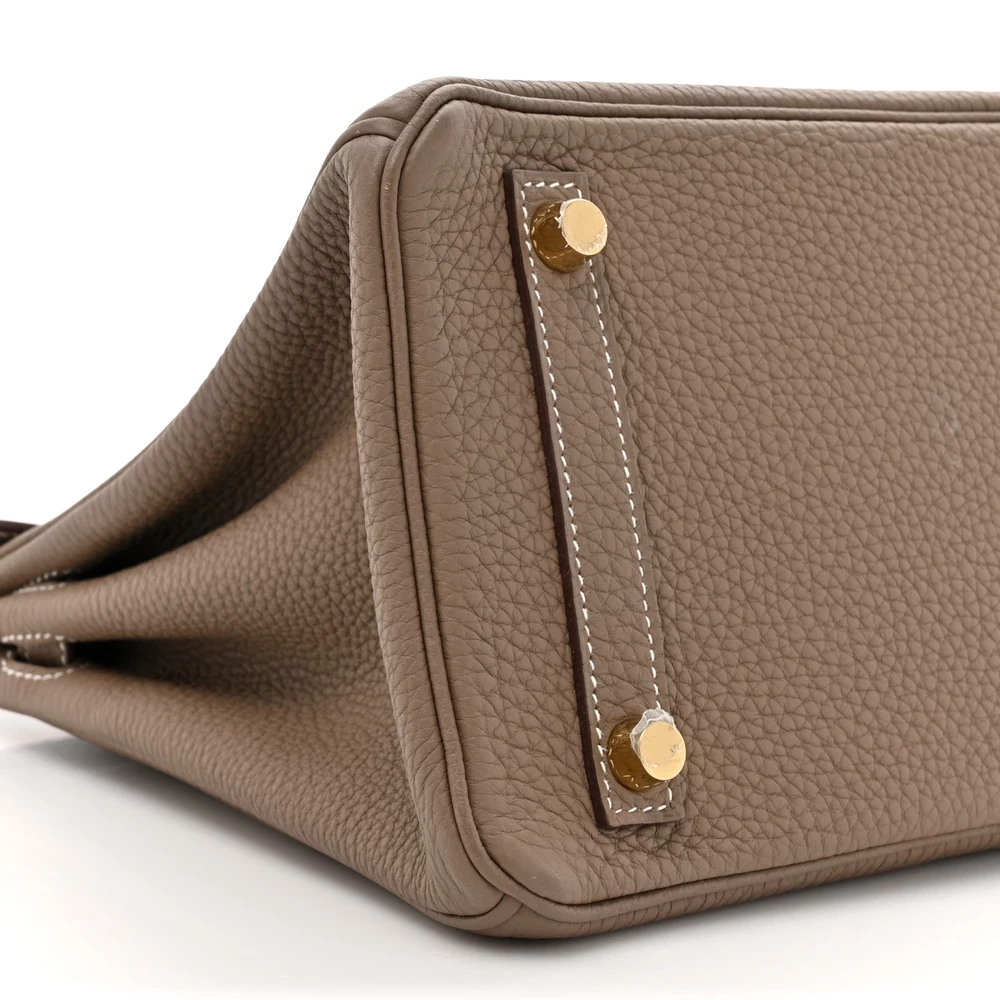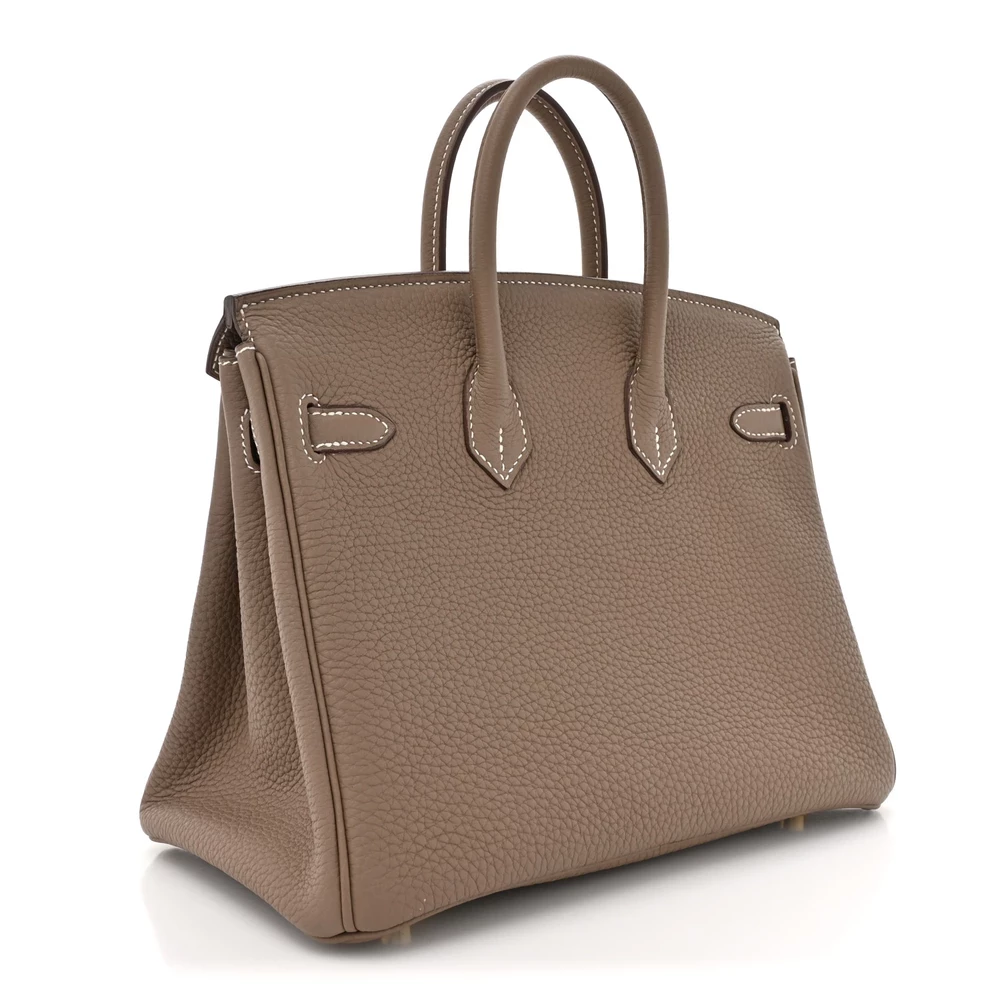 This Hermès Togo Birkin 25 in Etoupe is a chic and compact handbag, crafted from Togo leather, which is known for its durability and refined texture. The ‘Etoupe’ shade is a versatile taupe hue that pairs seamlessly with both casual and formal attire. Measuring 25 cm, it is perfect for those who favor a smaller yet luxurious handbag. The white contrast stitching accentuates its structured silhouette, while the palladium hardware adds a contemporary flair. This Birkin is a timeless investment piece that showcases Hermès’ exquisite artistry.