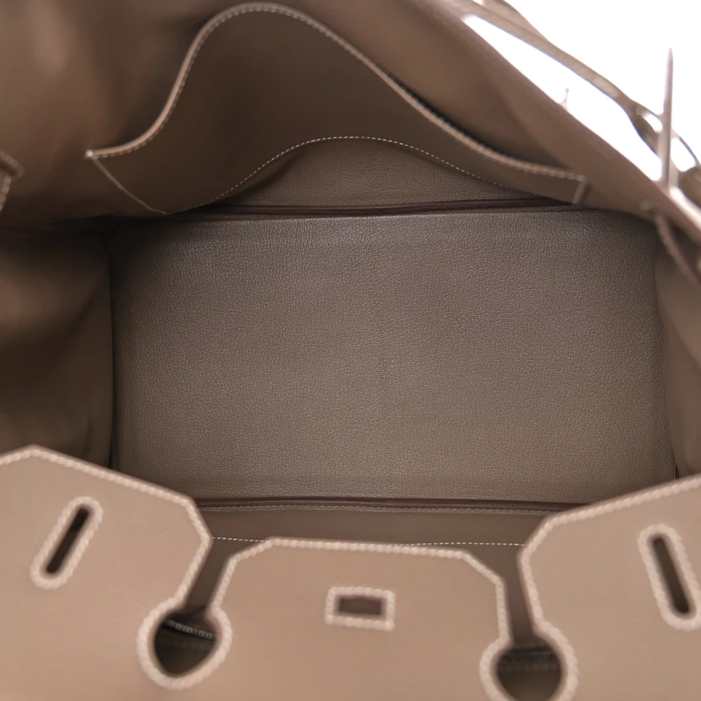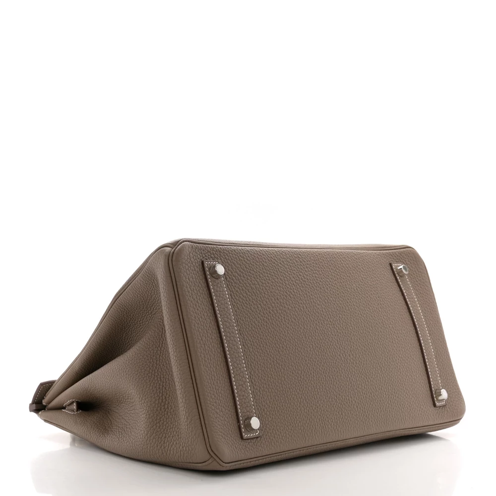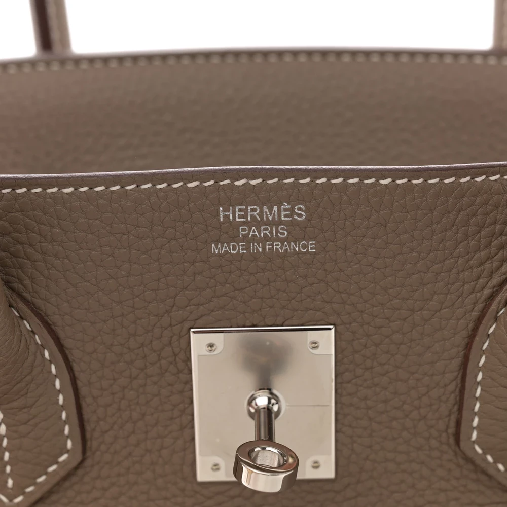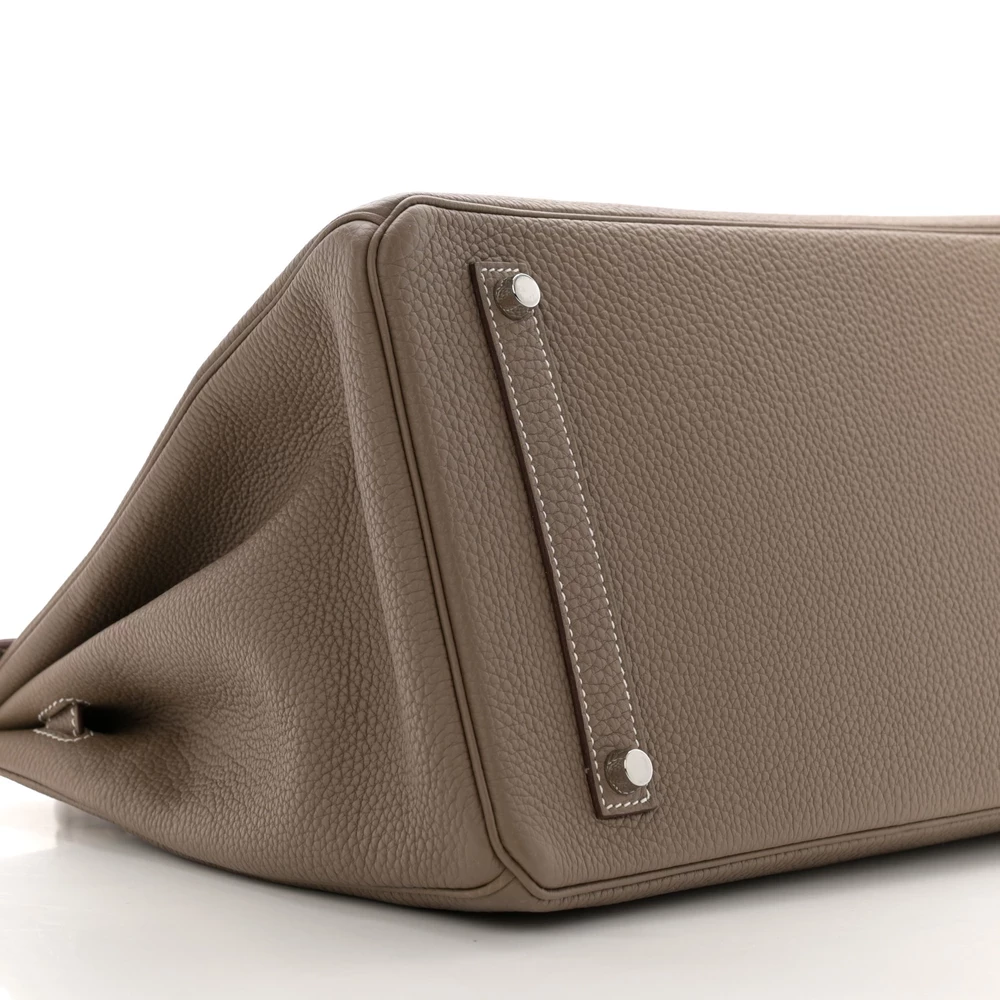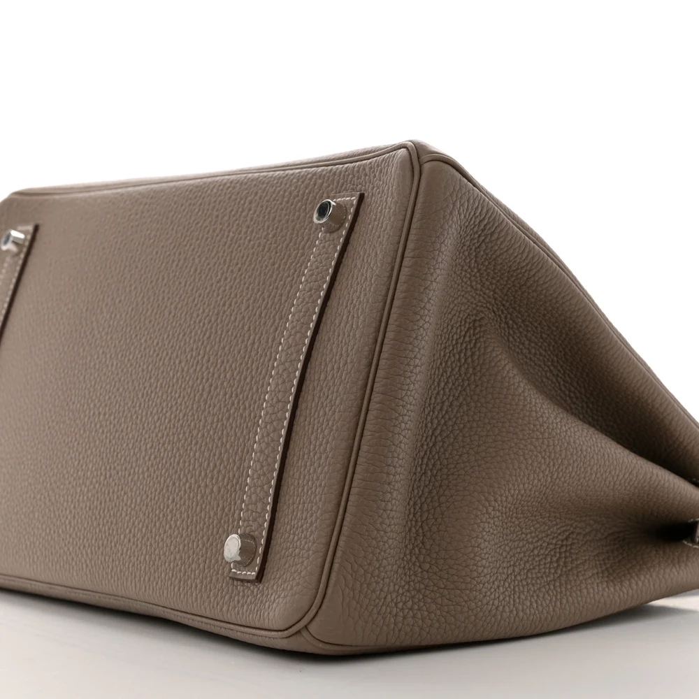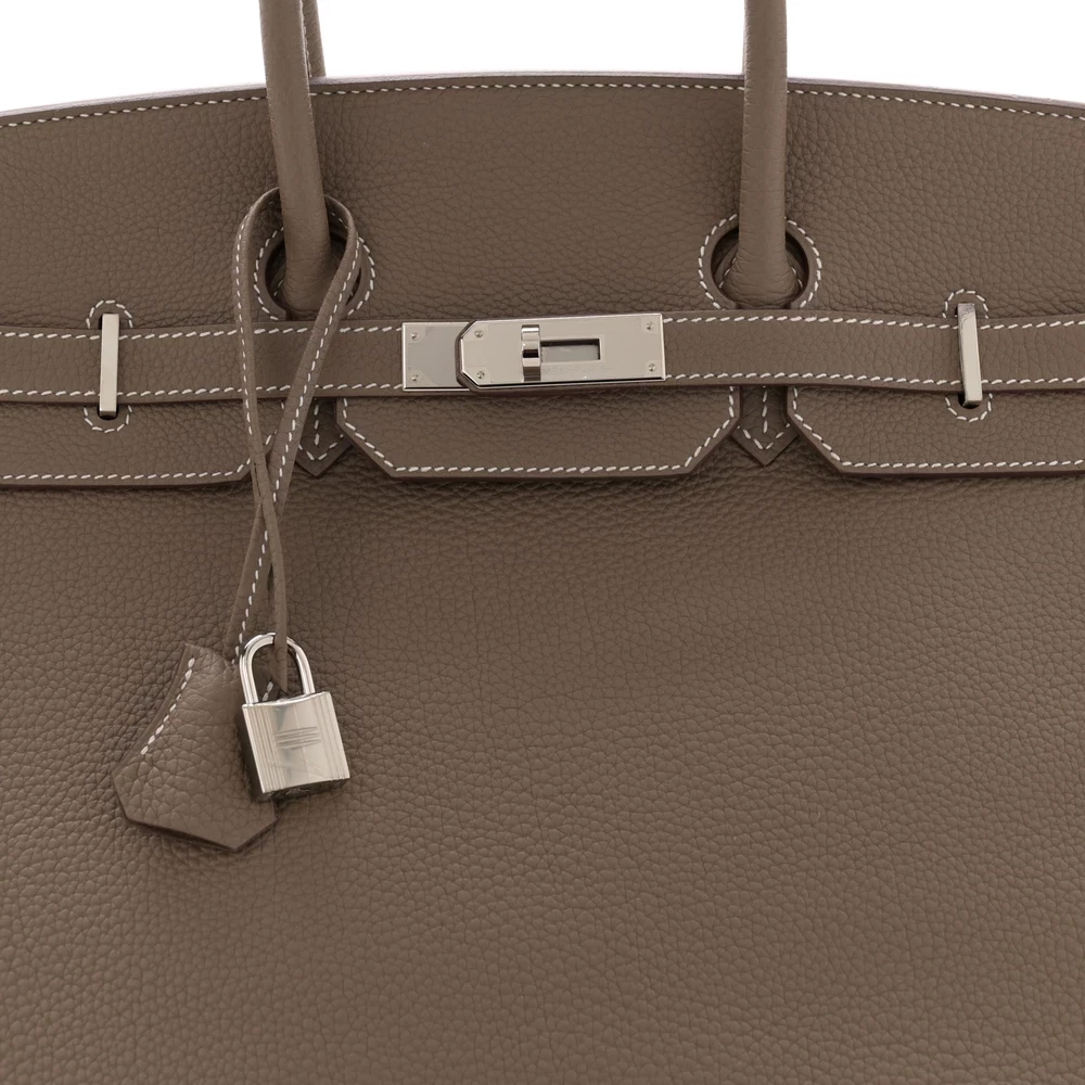 This Hermès Togo Birkin 35 in Etoupe is a sophisticated accessory crafted from Togo leather, renowned for its durability and texture. The neutral Etoupe color is versatile, seamlessly blending with various outfits. The 35 cm size offers generous space, making it practical for daily use. Palladium hardware adds a sleek contrast, enhancing the bag’s overall elegance. This Birkin exemplifies Hermès’ timeless design philosophy.