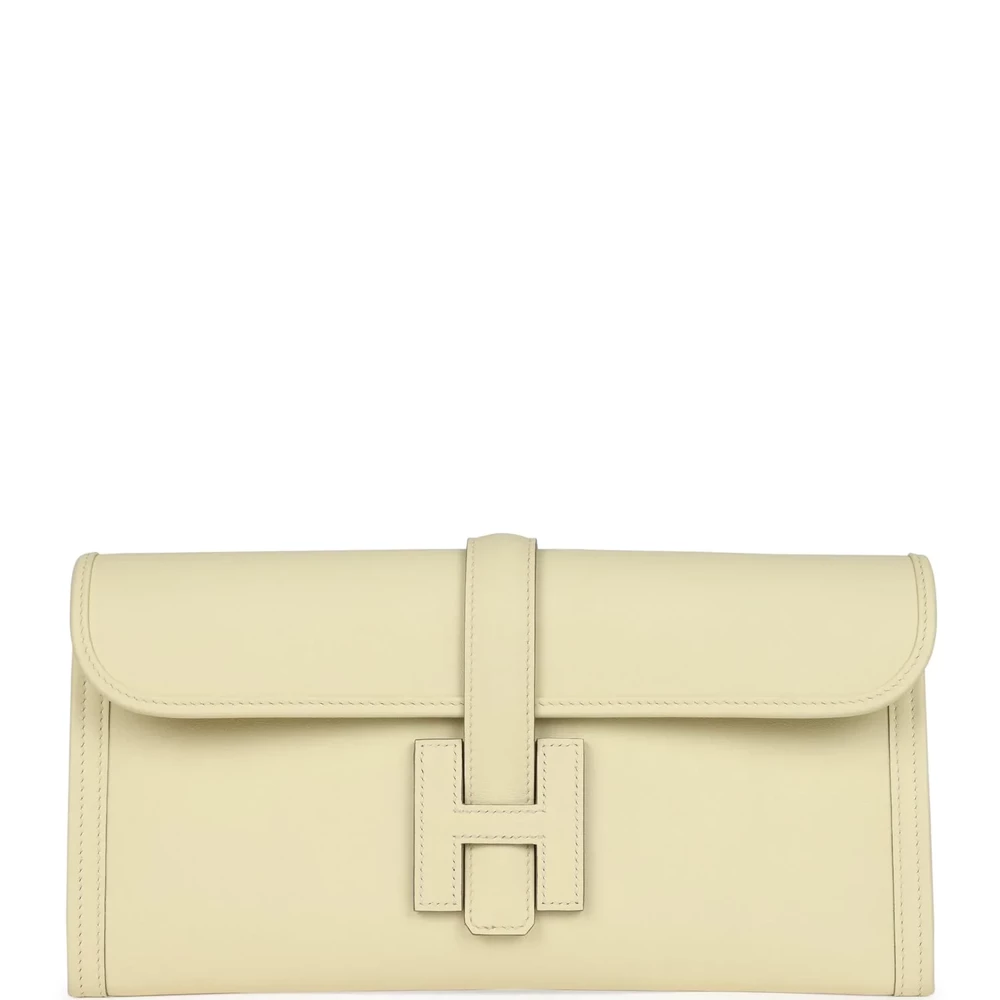 This Hermès Jige Elan 29 in Jaune Milton is a statement of refined simplicity and craftsmanship. Made from Swift leather, its buttery-soft texture enhances the bold yellow hue, offering a fresh and contemporary take on the classic clutch. The signature “H” closure lends an iconic touch, while the elongated shape provides a sleek and sophisticated profile. Designed for effortless elegance, this clutch is perfect for carrying essentials with a touch of timeless Hermès charm.