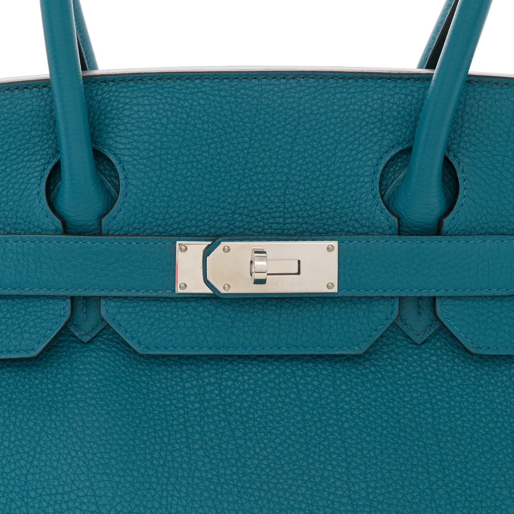This Hermès Togo JPG Shoulder Birkin II 42 in Cobalt is a bold and oversized handbag designed for effortless shoulder wear. The rich blue Cobalt hue is enhanced by the grained Togo leather, which ensures both durability and a relaxed silhouette. The extended handles and spacious 42 cm size make it a practical yet stylish choice. Palladium hardware adds a sleek contrast to the deep blue shade. This is a modern and functional twist on the classic Birkin.