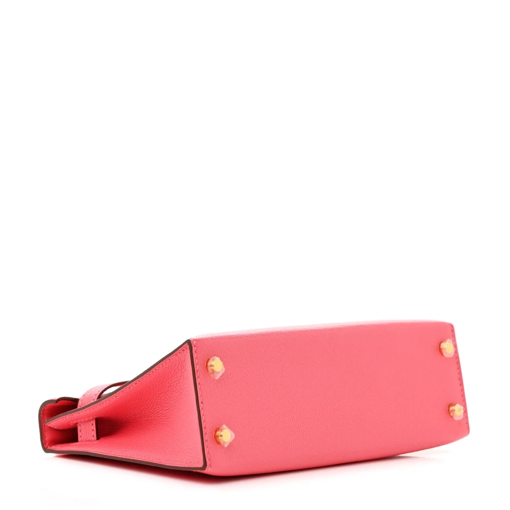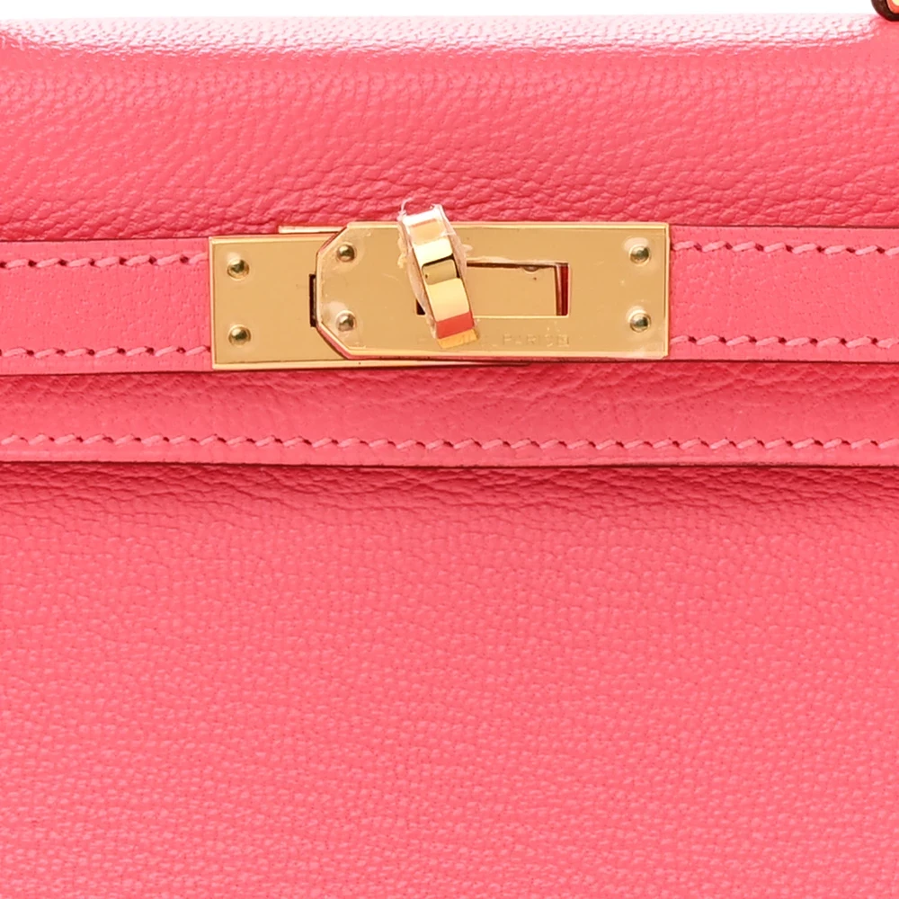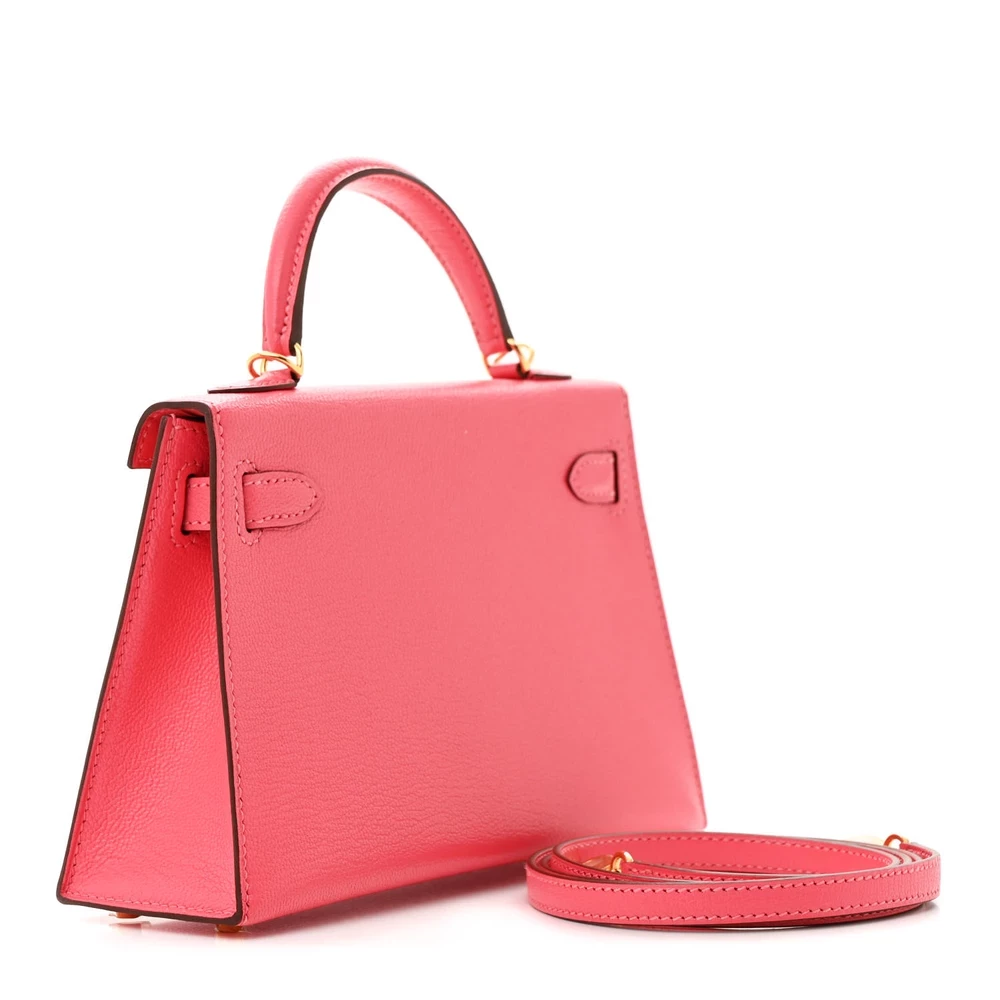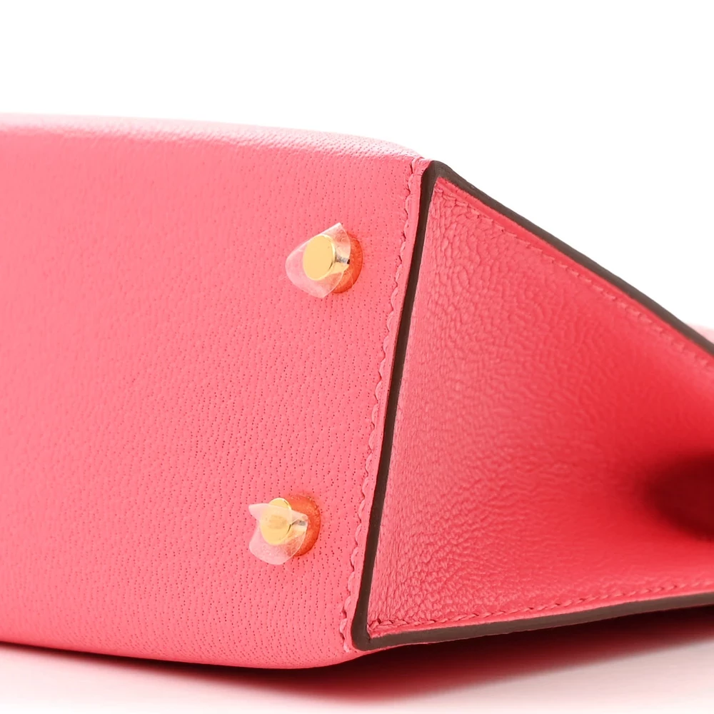 This Hermès Chèvre Mysore Mini Kelly Sellier 20 Rose Lipstick is a vibrant and playful handbag in a striking pink shade. The Chèvre Mysore leather provides a fine grain and subtle sheen, elevating its luxurious appeal. The compact 20 cm size makes it a perfect statement piece for special occasions. Palladium hardware adds a sleek touch, enhancing the bright and lively color. This Mini Kelly is a standout piece for those who love bold, feminine hues.
