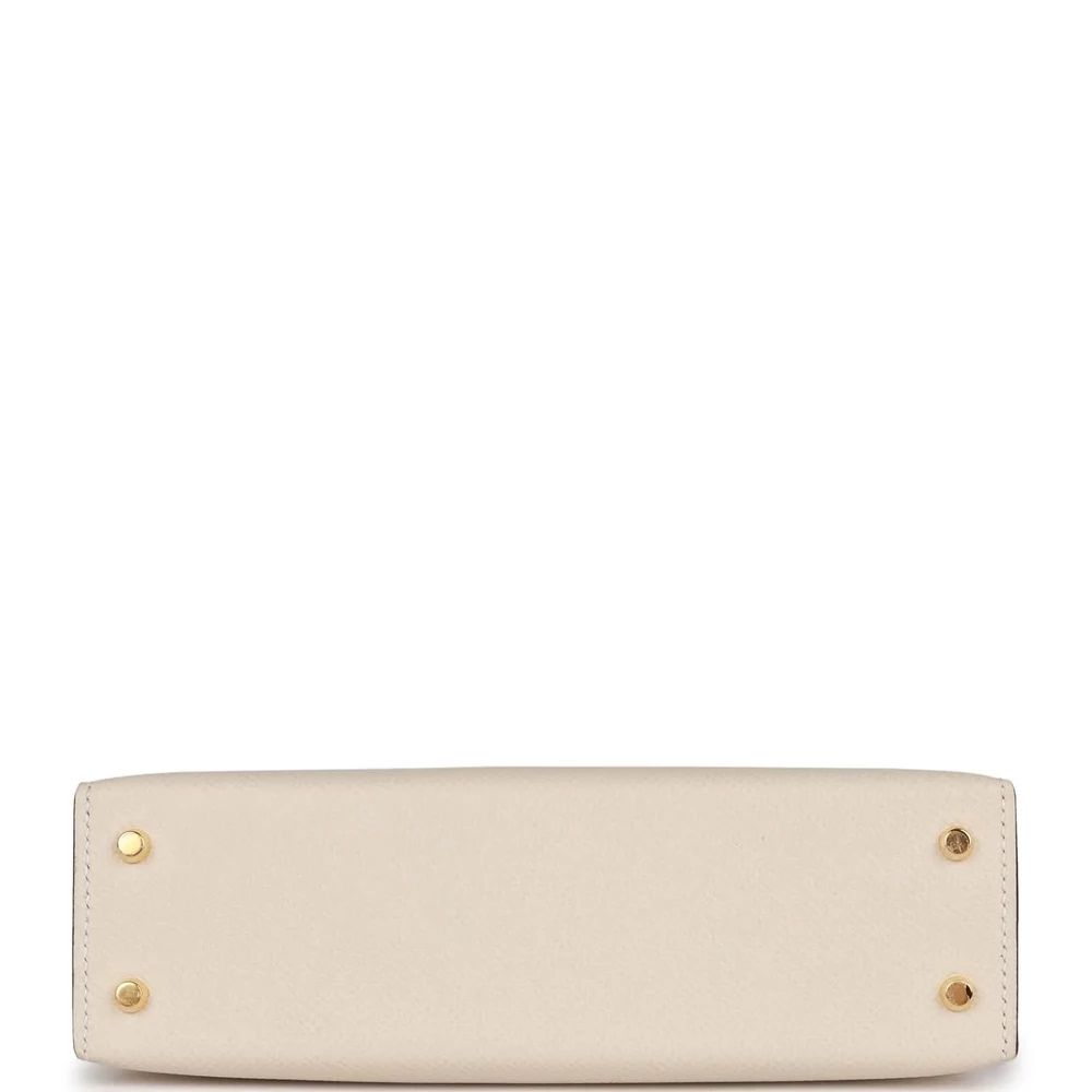 This Hermès special order Kelly Sellier 20 is constructed from Craie and Black Epsom leather with gold hardware. It features contrast stitching, a front flap with two straps and a toggle closure, a single rolled handle, and a removable shoulder strap. The interior is lined with Black chèvre leather and includes one open pocket on the back wall. The combination of Craie and Black leather gives this Kelly a bold and timeless look. The gold hardware adds warmth and elegance. The 20 cm size is ideal for those who prefer a compact and stylish accessory.