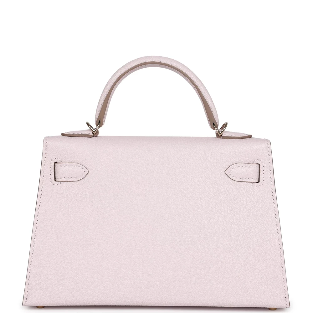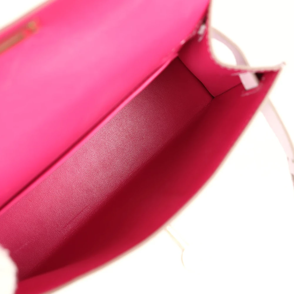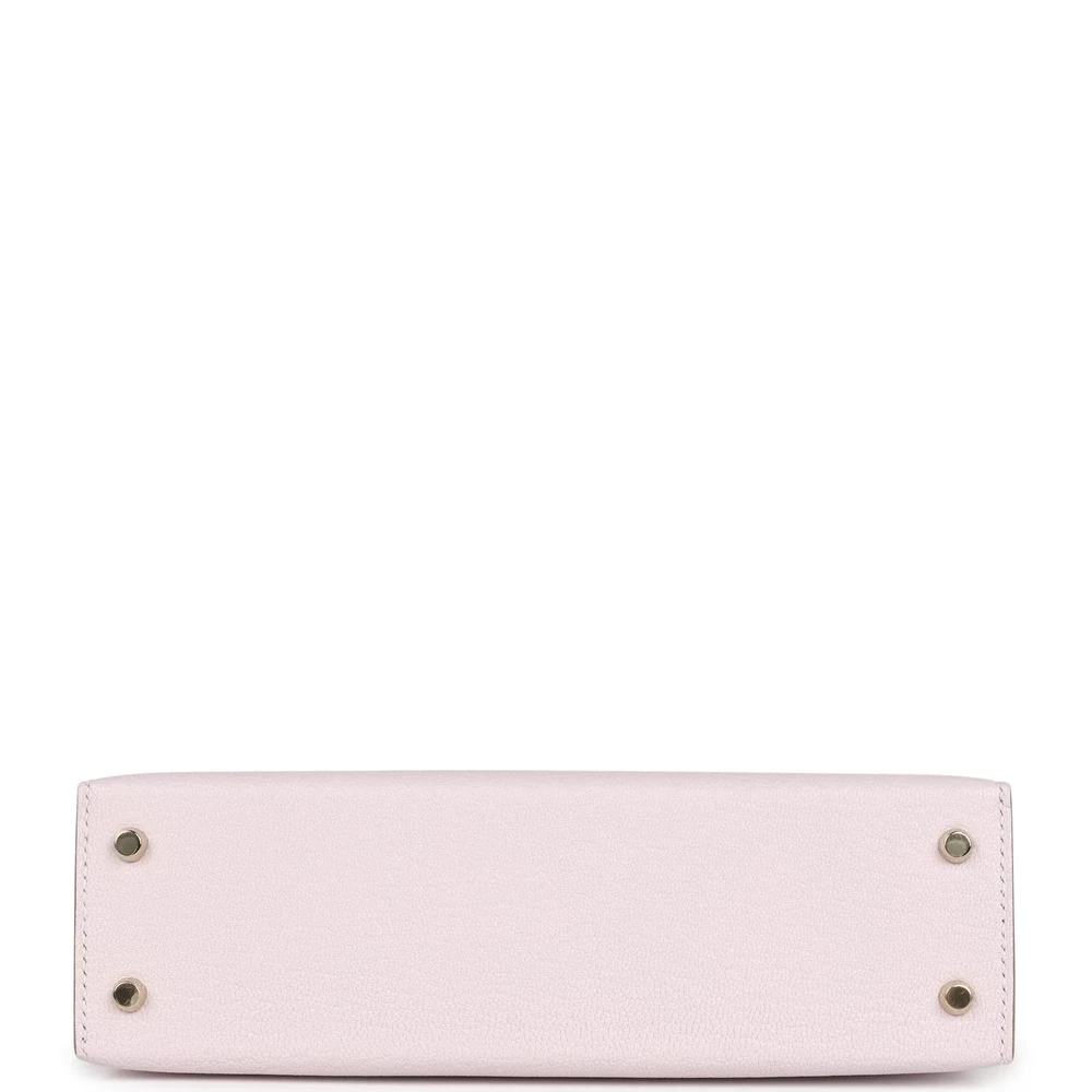 This Hermès Kelly Sellier 20 in Mauve Pale Verso is a unique and luxurious handbag. Made from Chèvre Mysore leather, it features a reversible design. The Permabrass hardware adds a unique touch. Its soft purple hue is perfect for adding sophistication to any outfit. The structured silhouette ensures elegance. A must-have for collectors. This bag is a true Hermès treasure.