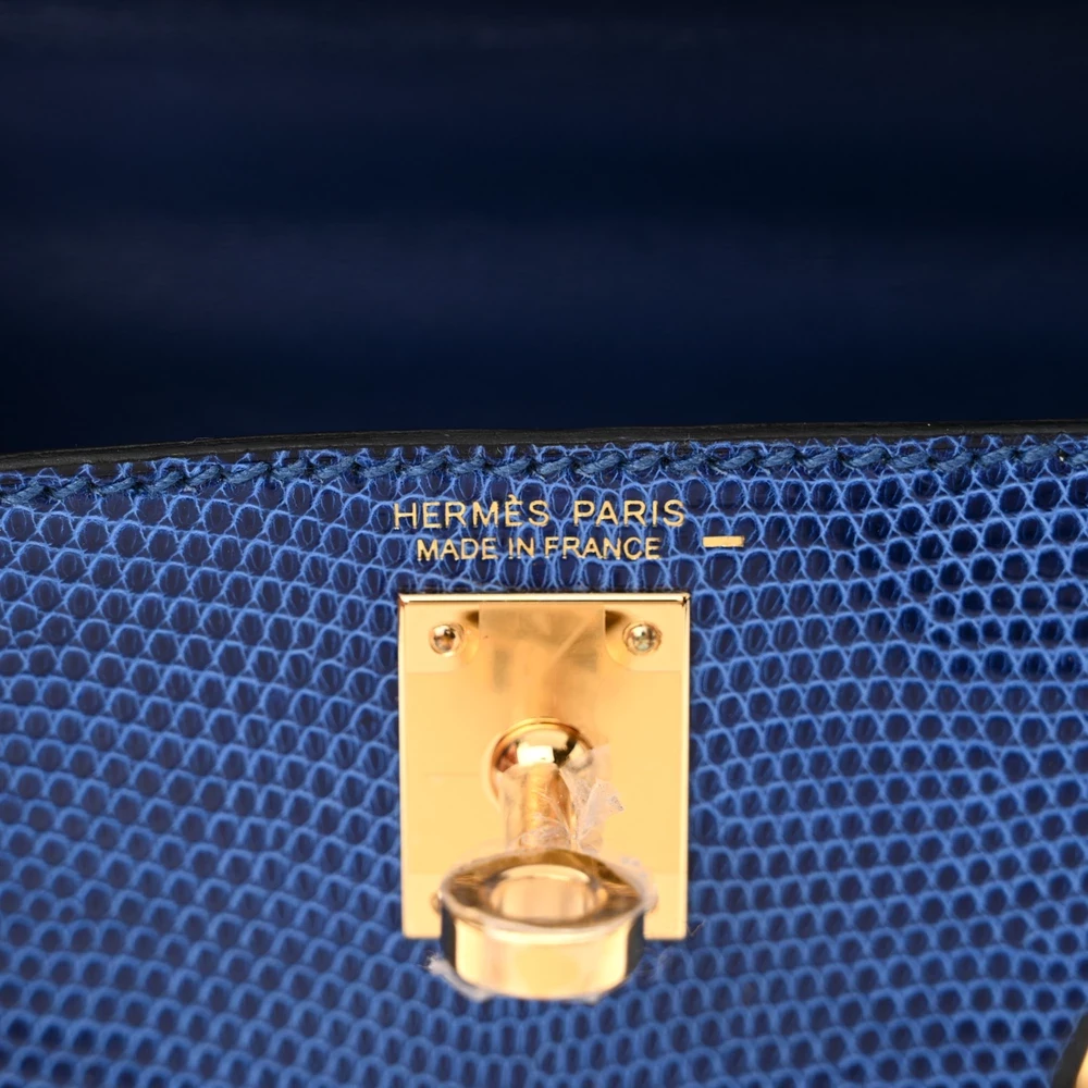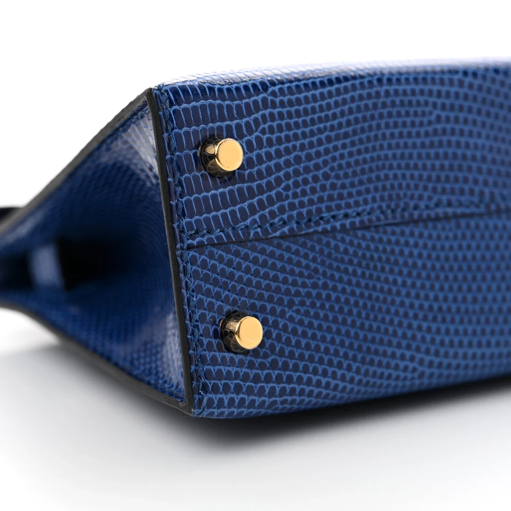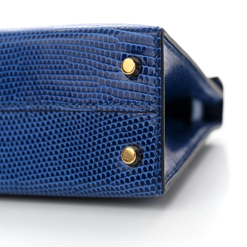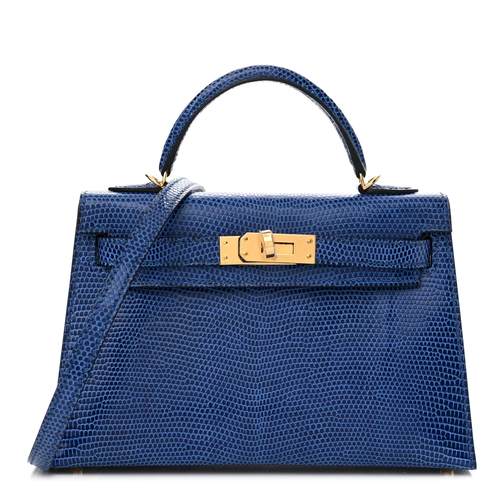 This Hermès Shiny Lizard Mini Kelly Sellier 20 Bleu Saphir is an exquisite and rare handbag in a deep sapphire blue shade. The lizard leather provides a glossy, luxurious finish, highlighting its exotic appeal. The compact 20 cm size makes it a dazzling piece for evening wear. Palladium hardware adds a cool contrast, enhancing its rich color. This Mini Kelly is a collector’s masterpiece for those who love rare and opulent materials.