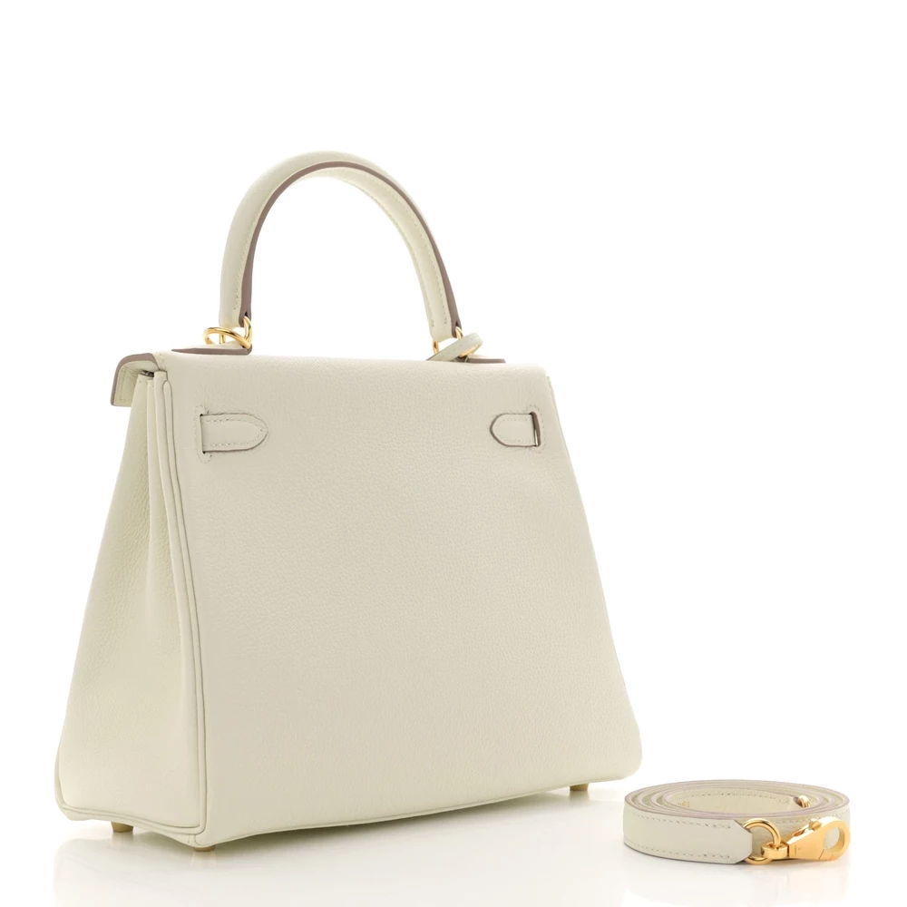 This Hermès Togo Kelly Retourne 25 Mushroom is a neutral and understated handbag with timeless appeal. The Togo leather offers a soft grain and slightly relaxed structure, making it both luxurious and versatile. The Mushroom shade is a sophisticated blend of taupe and beige, perfect for effortless styling. The compact 25 cm size ensures elegance while remaining practical. This Kelly is a refined choice for those who love neutral tones with a modern touch.