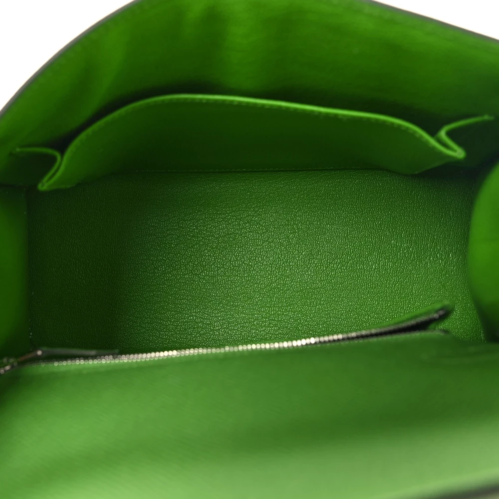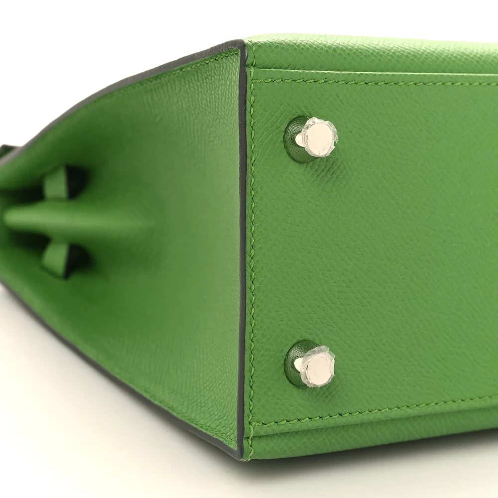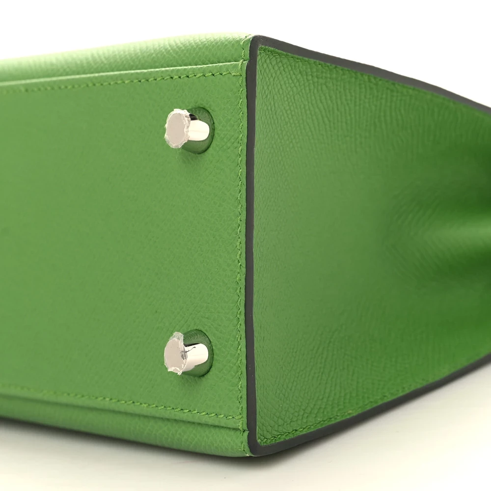 This Hermès Epsom Kelly Sellier 25 Vert Yucca is a bold and fresh handbag in a vibrant green shade. The Epsom leather offers a structured, scratch-resistant finish, ensuring a polished look. The Sellier construction enhances its crisp and elegant silhouette. Palladium hardware provides a modern contrast. This Kelly is a striking and sophisticated statement piece.