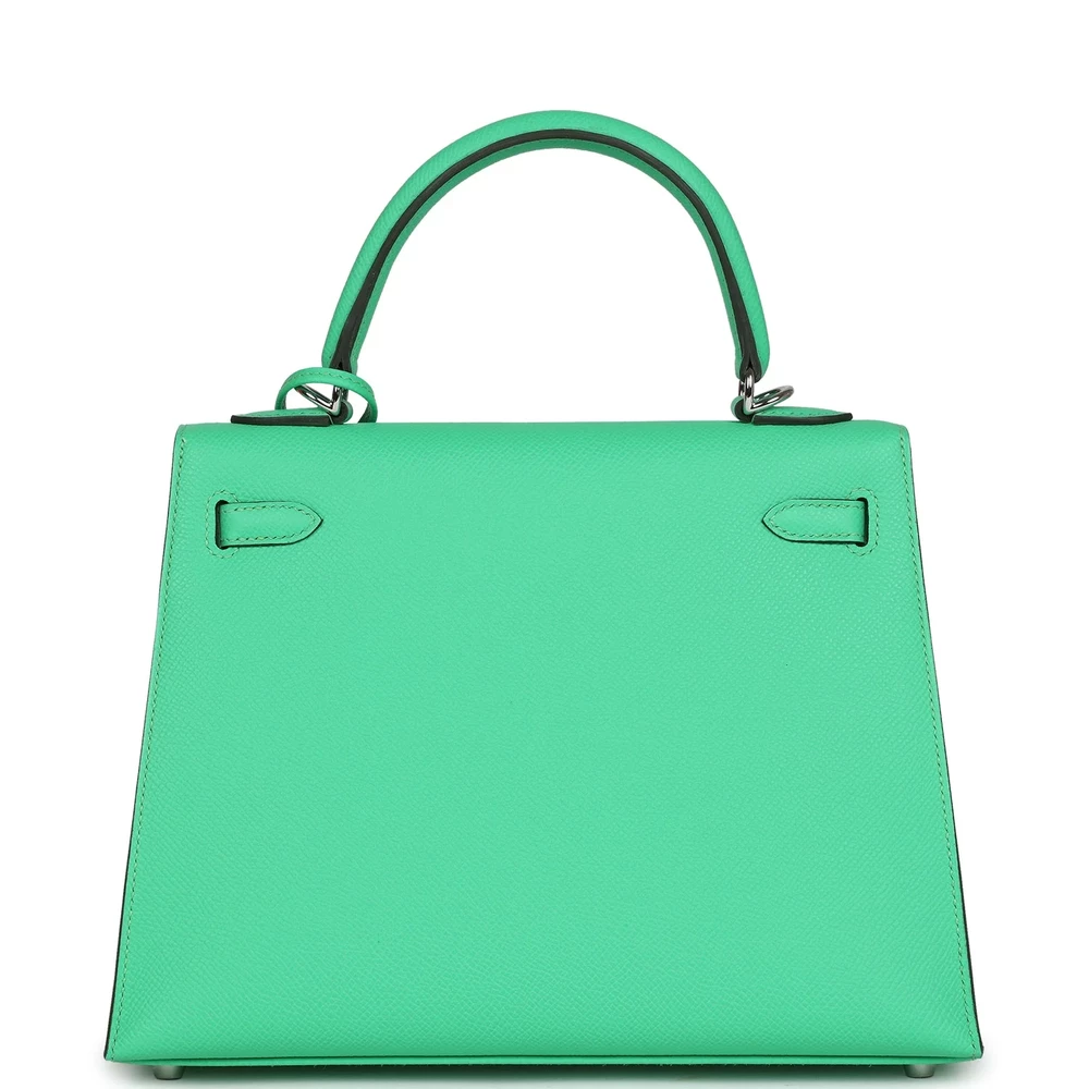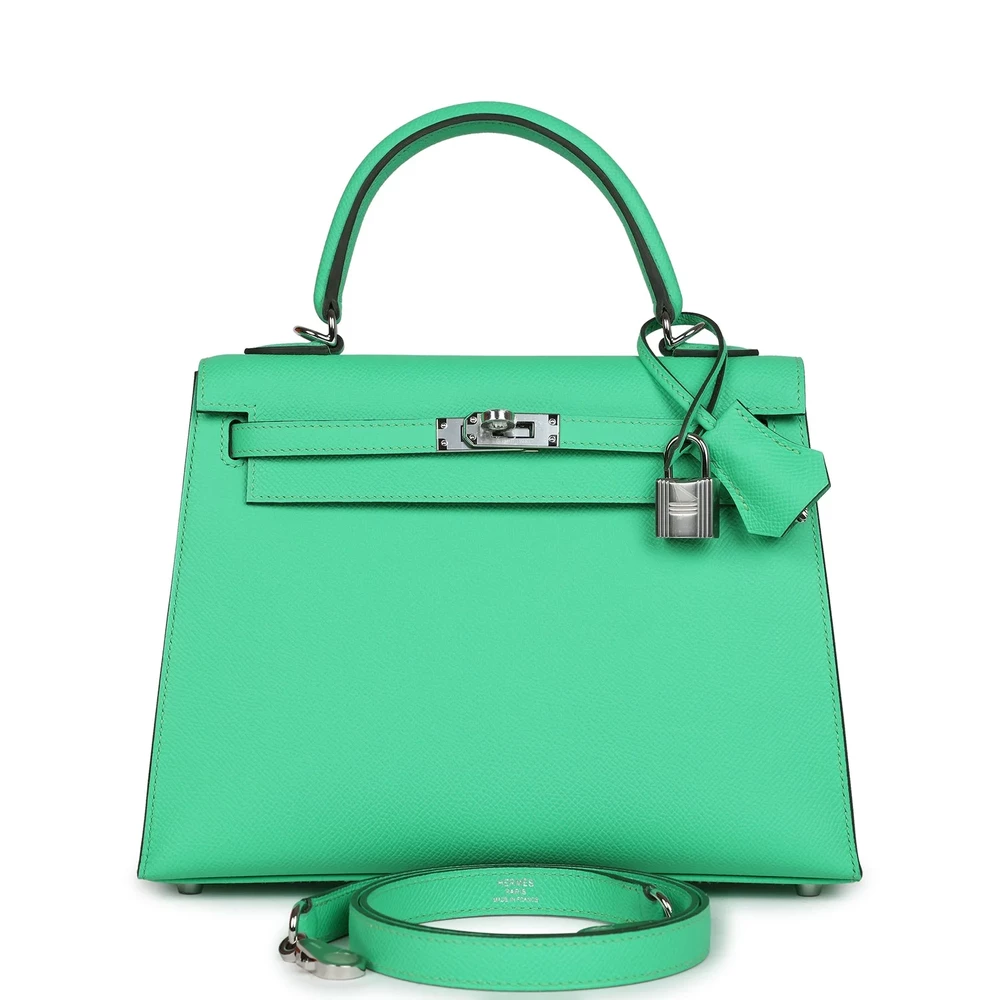 This Hermès Kelly Sellier 25 in Vert Comics is a timeless and elegant choice. Crafted from durable Epsom leather, it features a structured silhouette. The Palladium hardware adds a modern touch. Its vibrant green hue is perfect for adding sophistication to any outfit. The spacious interior offers practicality and style. A must-have for any Hermès enthusiast. This bag is a true investment piece.