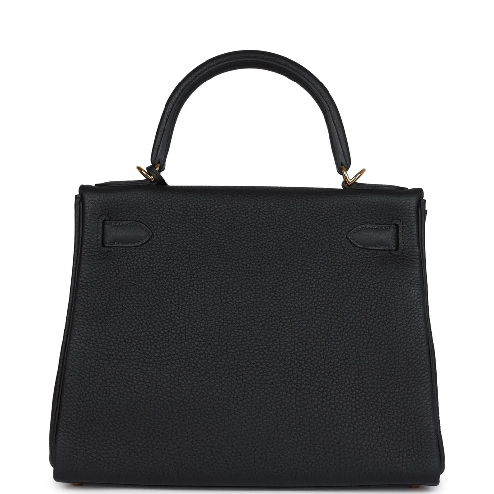 This Hermès Kelly Retourne 28 in Black is a luxurious and sophisticated choice. Crafted from durable Togo leather, it features a slouchy silhouette. The Gold hardware adds a touch of opulence. Its deep black hue is perfect for adding sophistication to any outfit. The spacious interior offers practicality and style. A must-have for collectors. This bag is a true Hermès treasure.