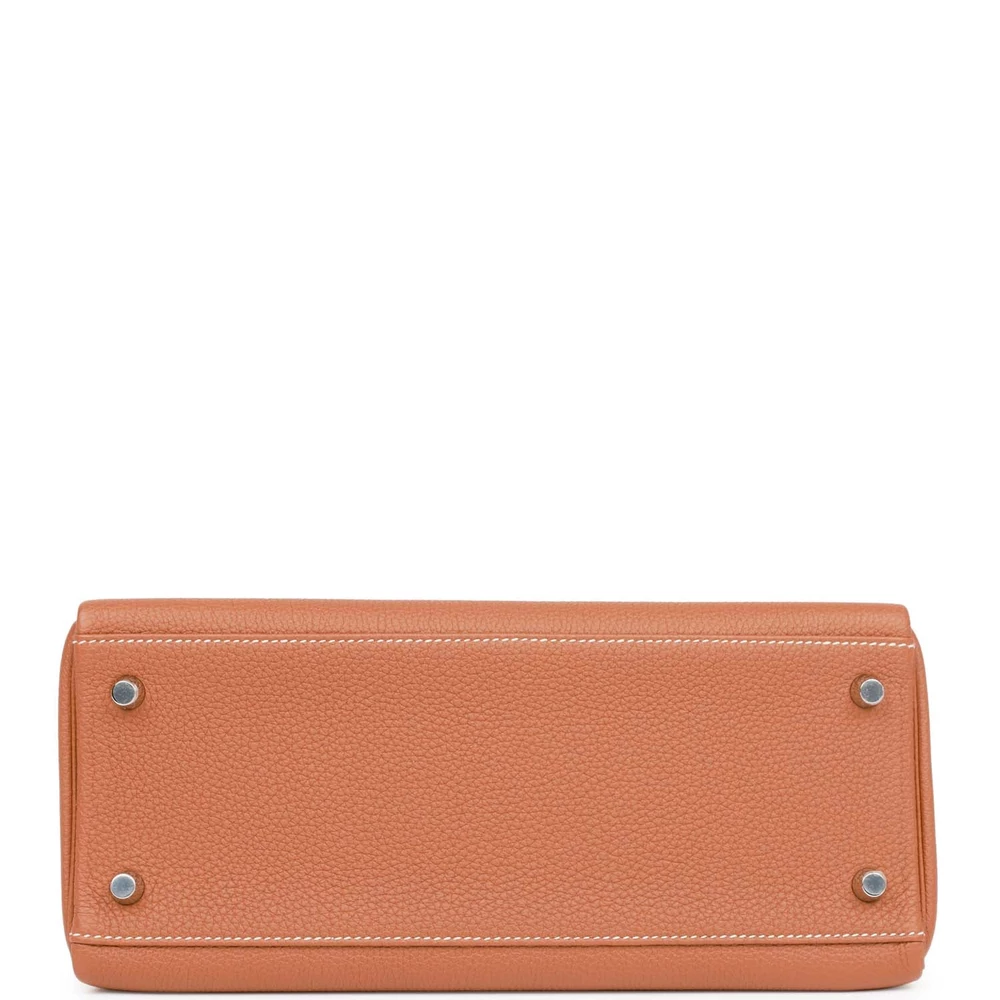 This Hermès Kelly Retourne 28 in Gold is a luxurious and sophisticated choice. Crafted from durable Togo leather, it features a slouchy silhouette. The Palladium hardware adds a modern touch. Its vibrant gold hue is perfect for adding sophistication to any outfit. The spacious interior offers practicality and style. A must-have for collectors. This bag is a true Hermès treasure.