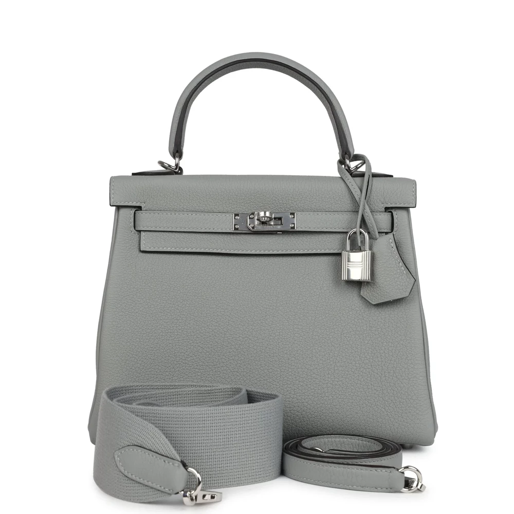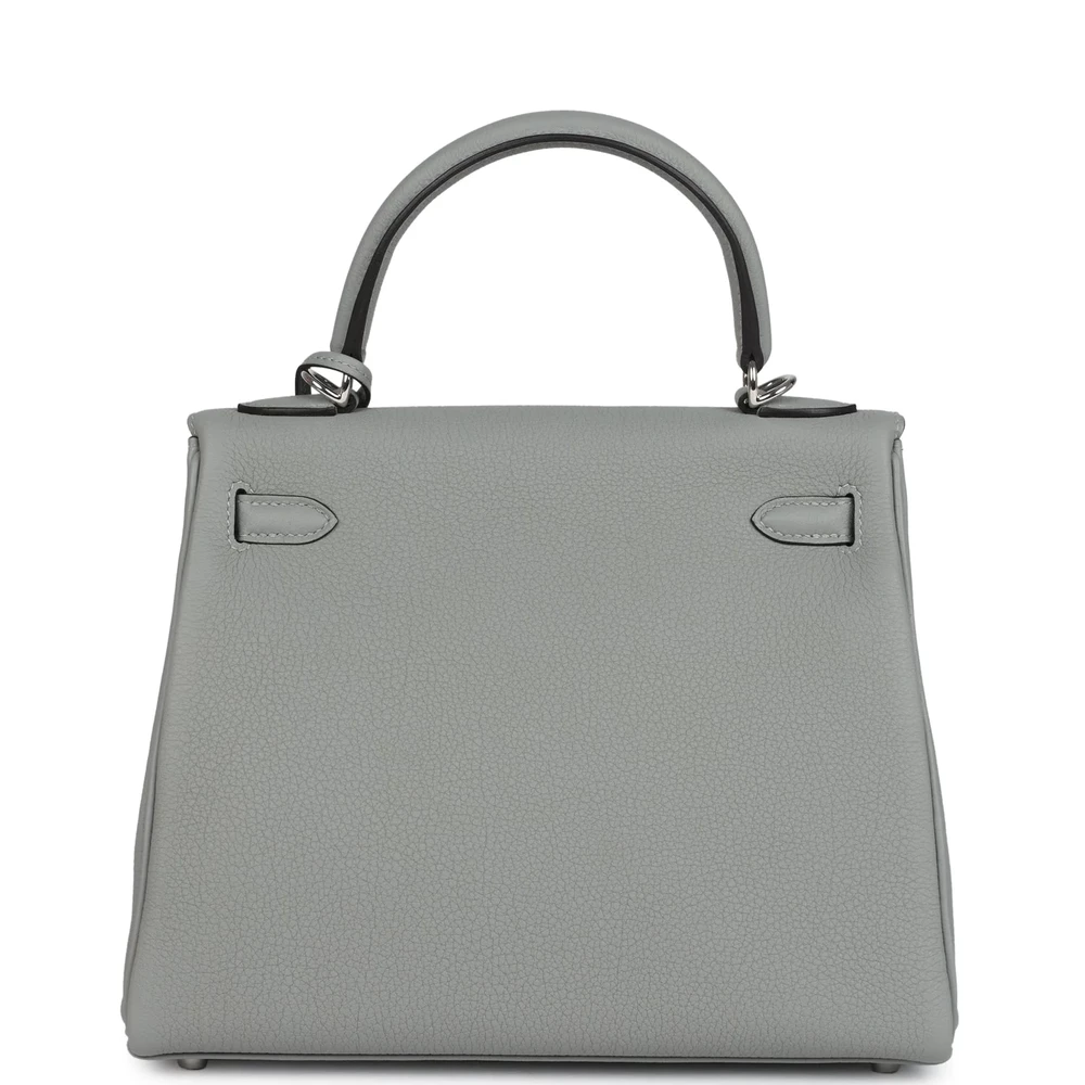 This Hermès Kelly Retourne 28 in Gris Mouette Togo leather is a timeless symbol of sophistication. The soft grey tone exudes understated elegance, perfect for any occasion. Retourne construction offers a relaxed yet refined silhouette. Palladium hardware enhances its modern and versatile appeal. Crafted for those who appreciate effortless luxury in everyday wear. Elevate your collection with this graceful and classic Kelly.