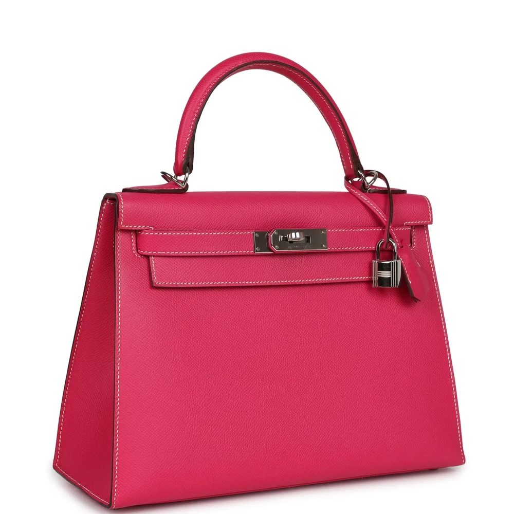 This Hermès Kelly Sellier 28 in Rose Tyrien is a stunning and sophisticated choice. Crafted from durable Epsom leather, it features a structured design. The Palladium hardware adds a modern touch. Its vibrant pink hue is perfect for adding elegance to any outfit. The spacious interior offers practicality and style. A must-have for any Hermès enthusiast. This bag is a true investment piece.
