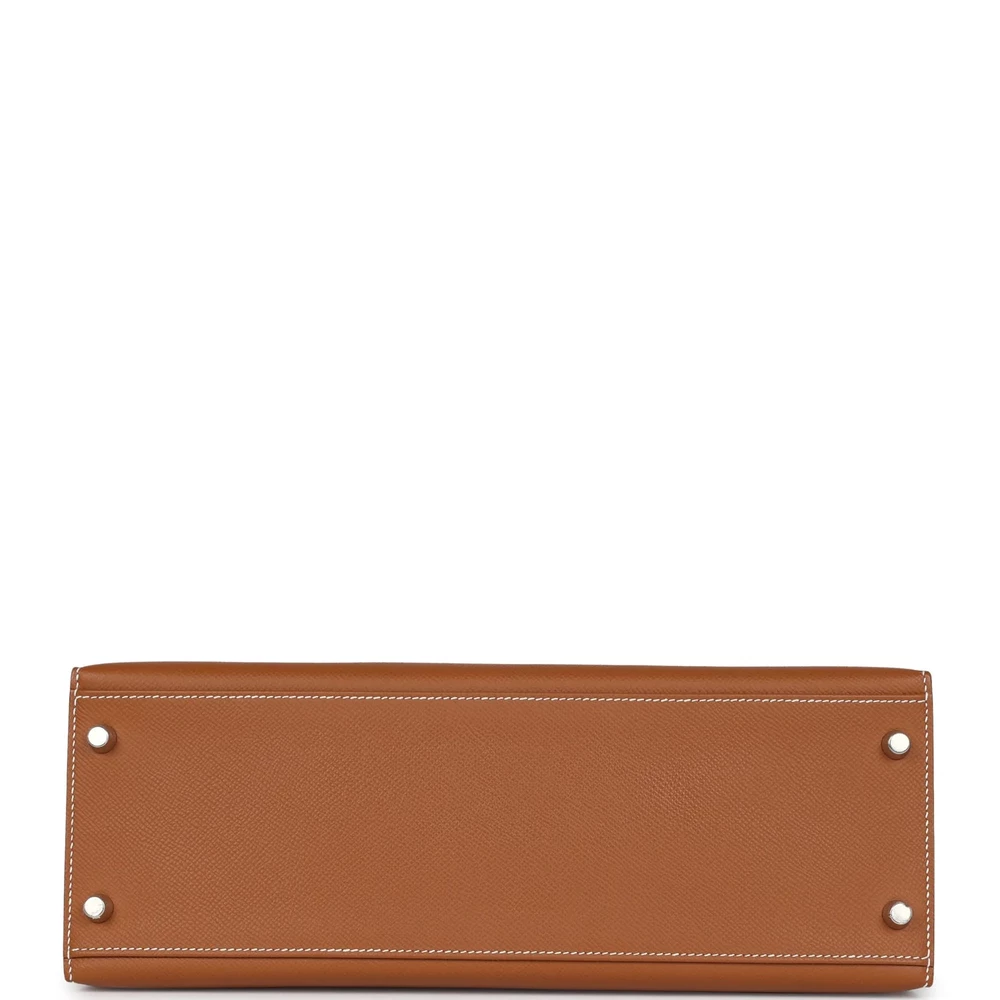 This Hermès Kelly Sellier 32 in Gold is a bold and luxurious statement. Made from durable Epsom leather, it features a structured silhouette. The Palladium hardware adds a modern touch. Its radiant gold hue is perfect for making a bold statement. The spacious interior offers practicality and style. A must-have for collectors. This bag is a true Hermès masterpiece.