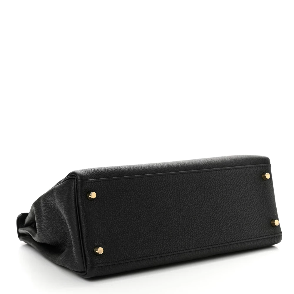This Hermès Togo Kelly Retourne 32 Black is a classic and versatile handbag in an iconic black hue. The Togo leather offers a soft, grained texture, ensuring both durability and sophistication. The Retourne construction gives it a slightly relaxed silhouette, making it perfect for daily wear. Palladium hardware adds a sleek, modern touch. This Kelly is an essential piece for those who appreciate effortless luxury.