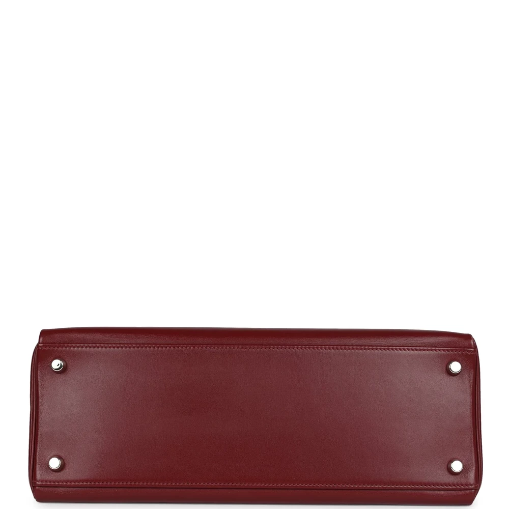 This Hermès Kelly Retourne 32 in Rouge H is a timeless and elegant choice. Made from smooth Box leather, it features a slouchy silhouette. The Palladium hardware adds a modern touch. Its deep red hue is perfect for adding sophistication to any outfit. The spacious interior offers practicality and style. A must-have for any Hermès enthusiast. This bag is a true investment piece.